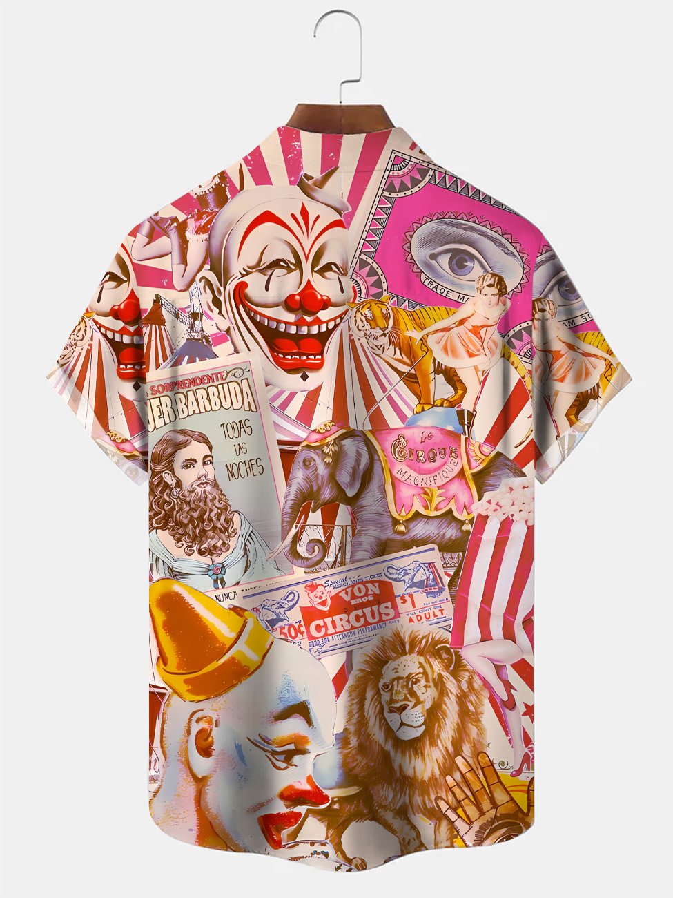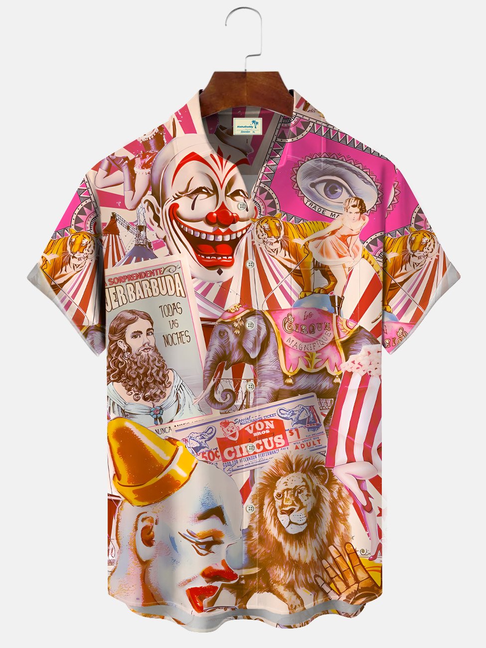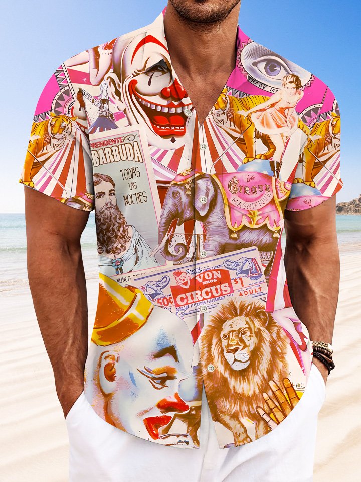 Alohadaddy Circus Clown Animal Pocket Button Casual Short Sleeve Shirt