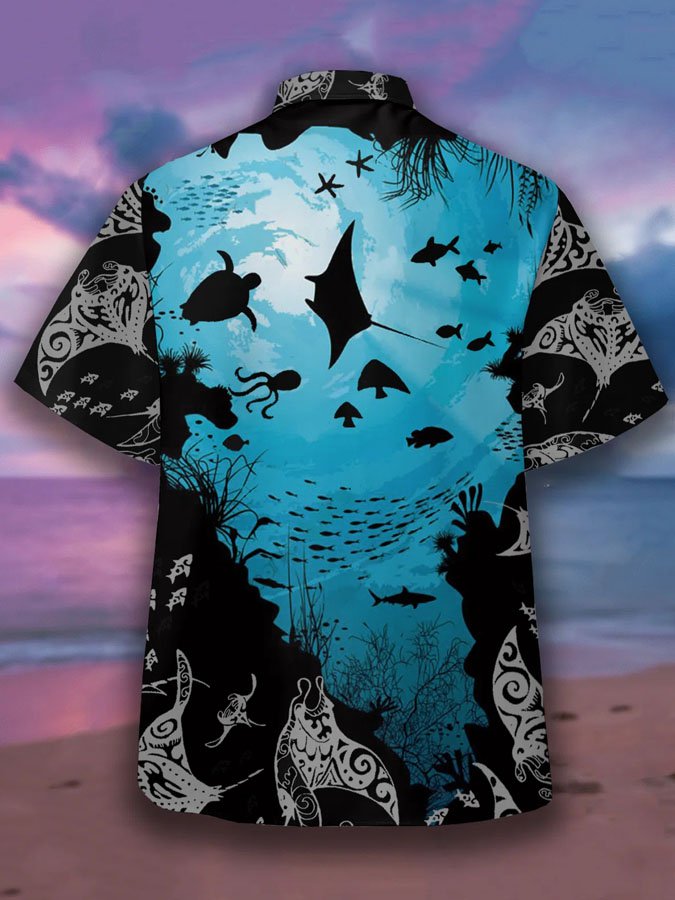 Men's Casual Marine Graphic Print Short Sleeve Hawaiian Shirt