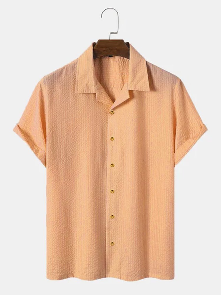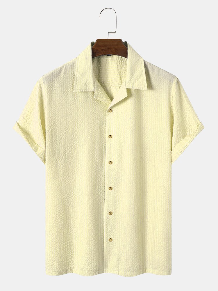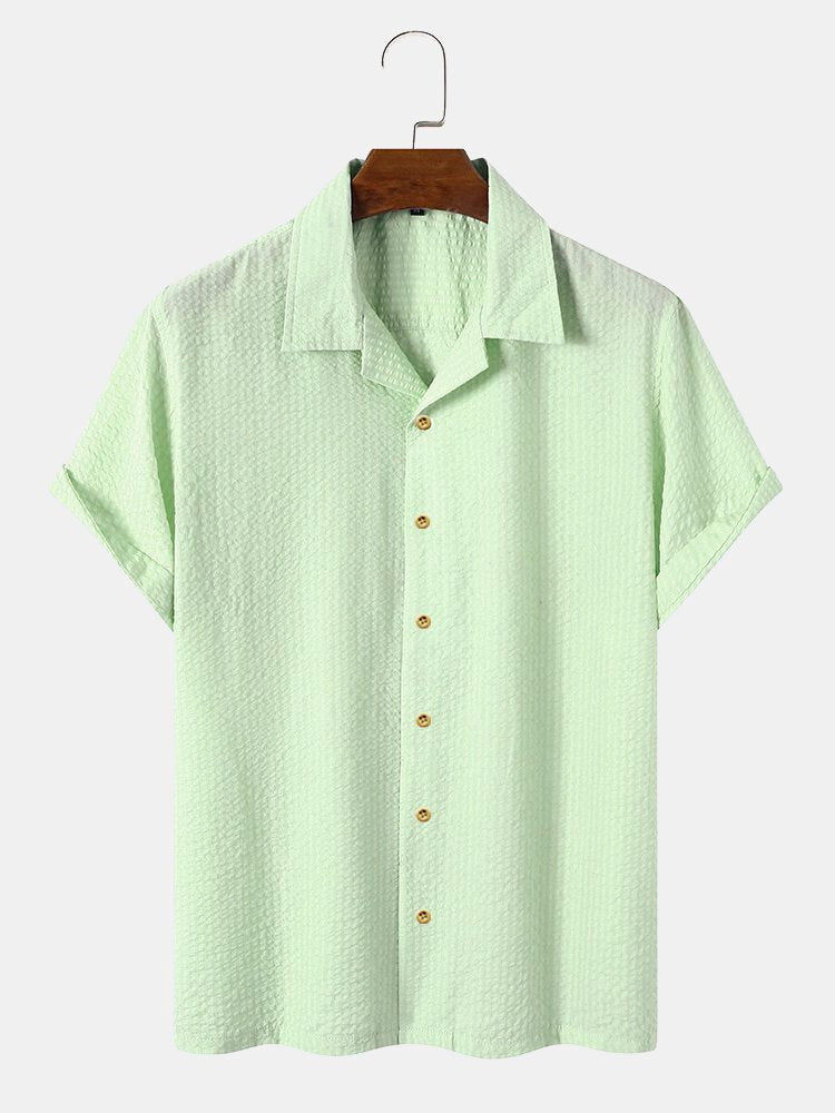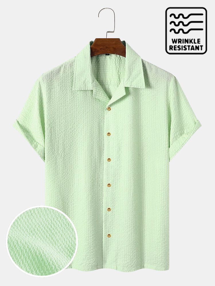 Men's Plain Seersucker Wrinkle Free Casual Shirts Multicolor Basic Tops