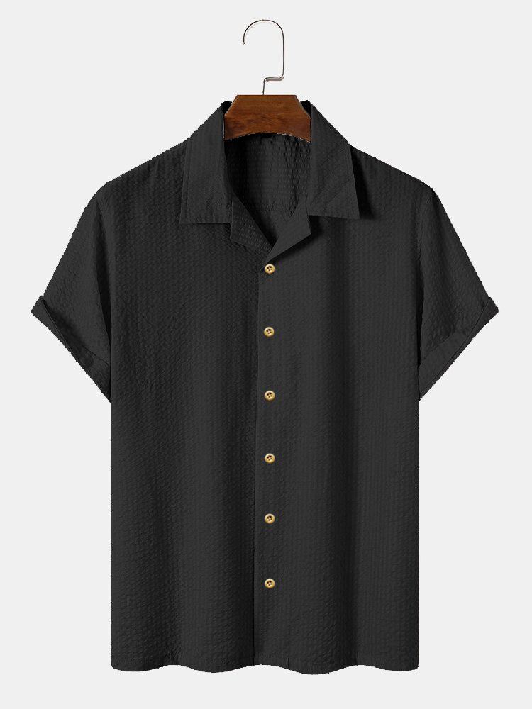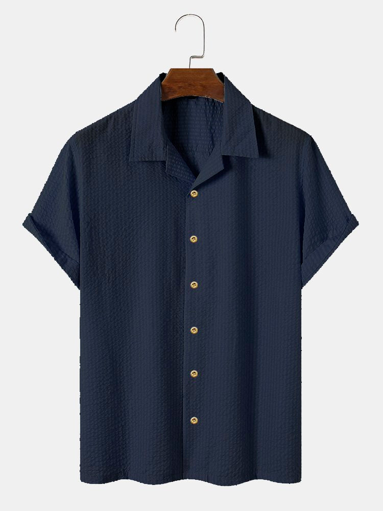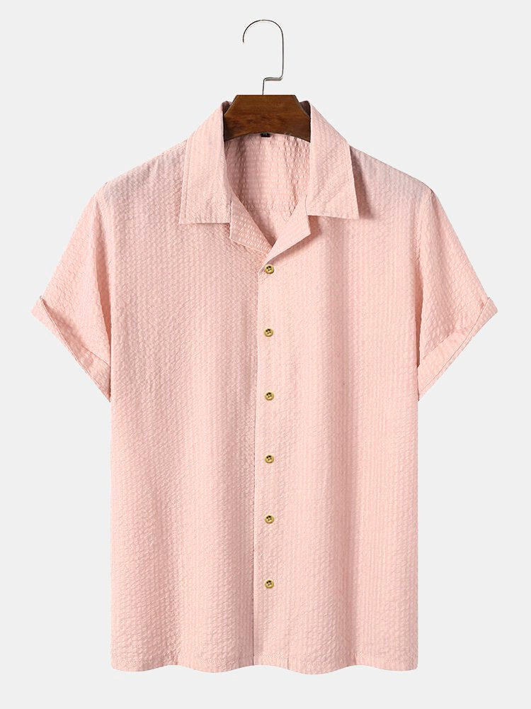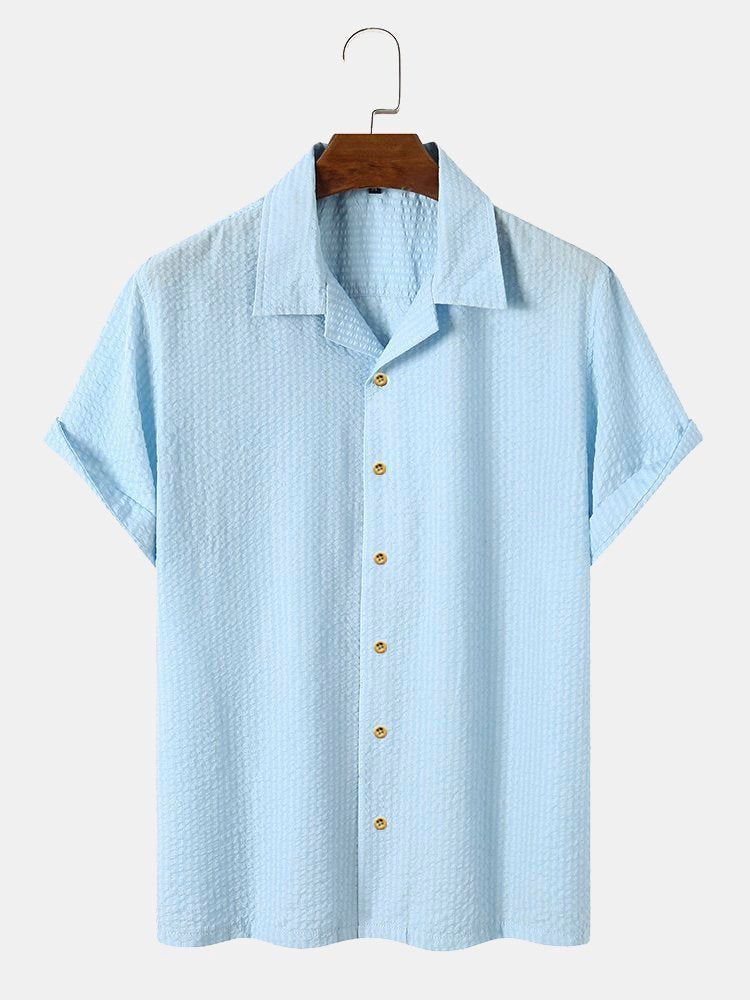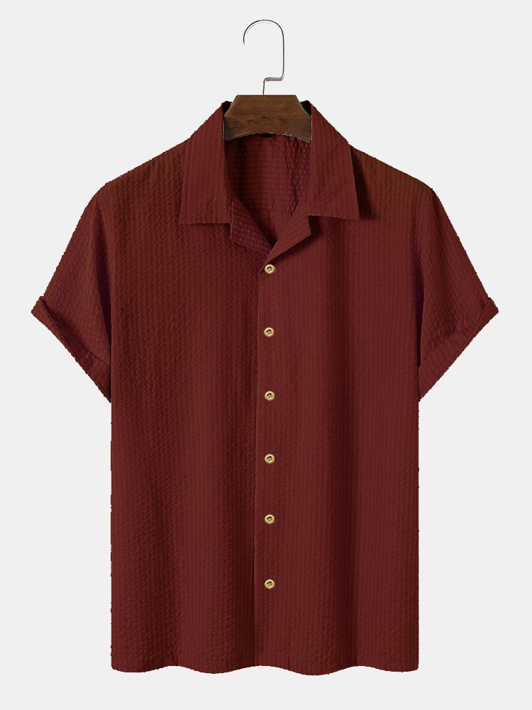 Men's Plain Seersucker Wrinkle Free Casual Shirts Multicolor Basic Tops