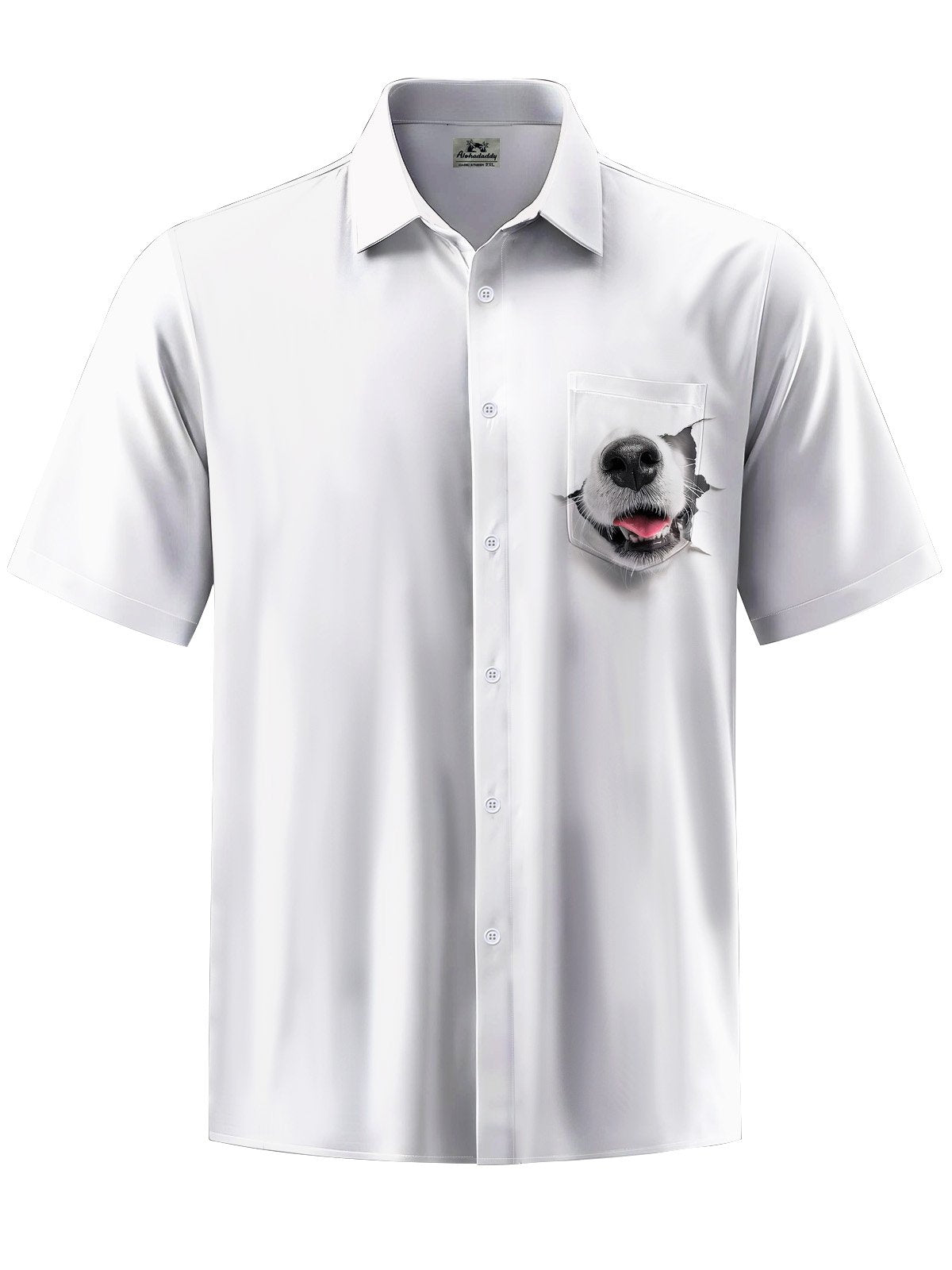 Alohadaddy® Casual Dog Art Print Chest Pocket Men's Short Sleeve Shirt Big & Tall
