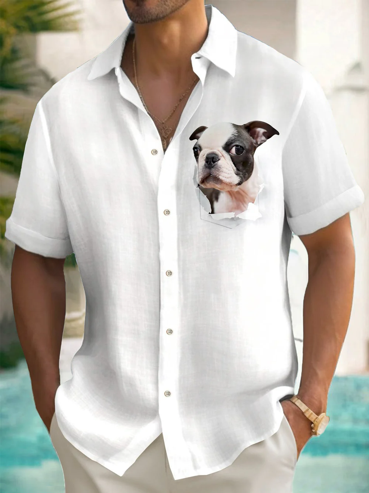 Alohadaddy® Casual Puppy Art Print Chest Pocket Men's Short Sleeve Shirt Big & Tall