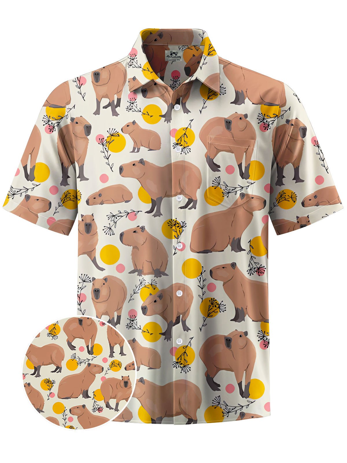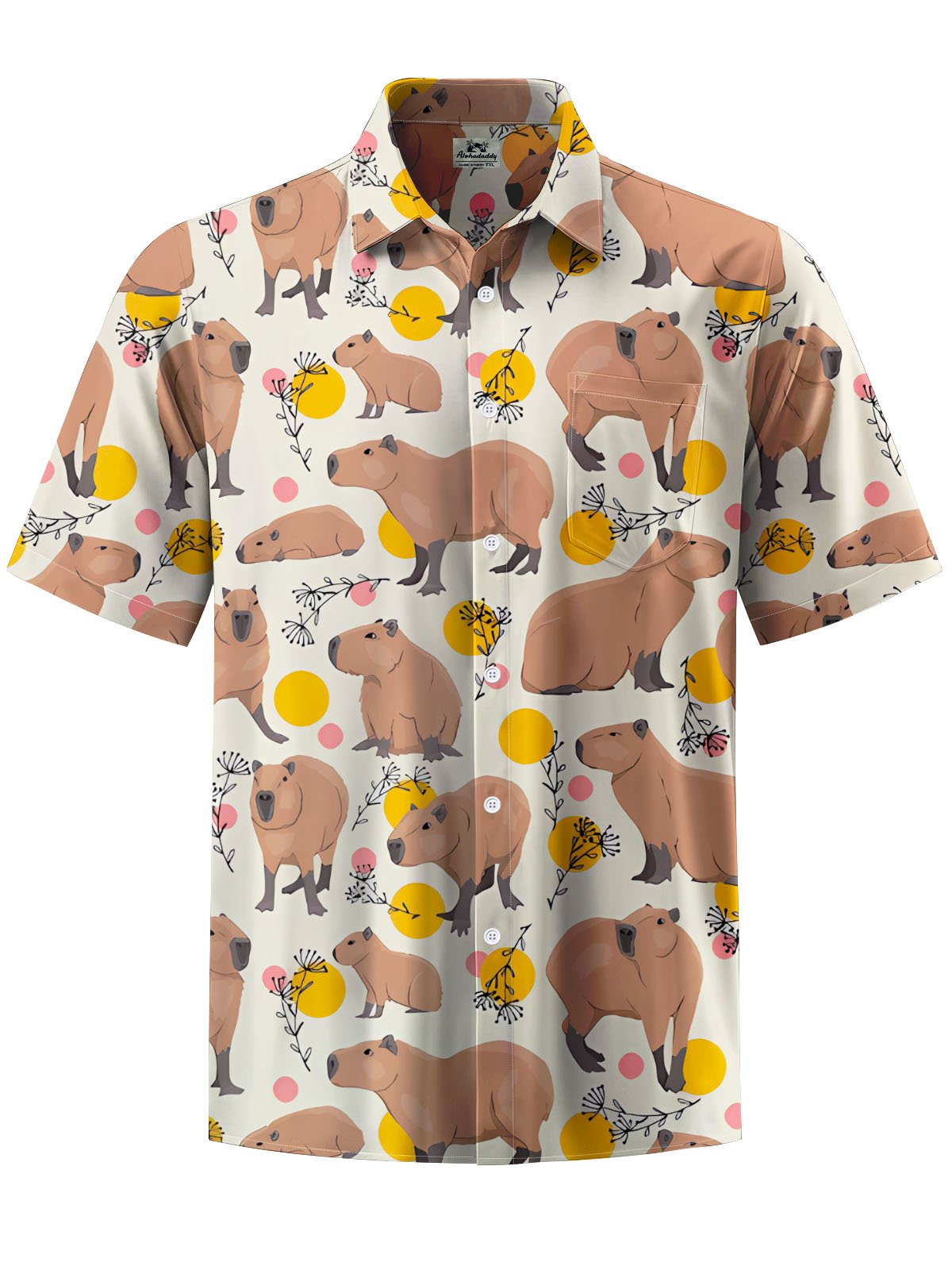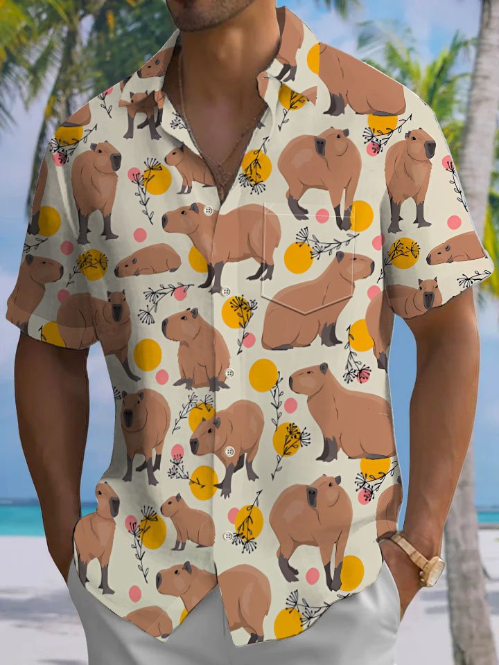Alohadaddy® Casual Capibara Print Chest Pocket Men's Short Sleeve Shirt Big & Tall