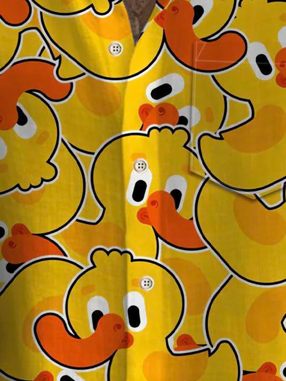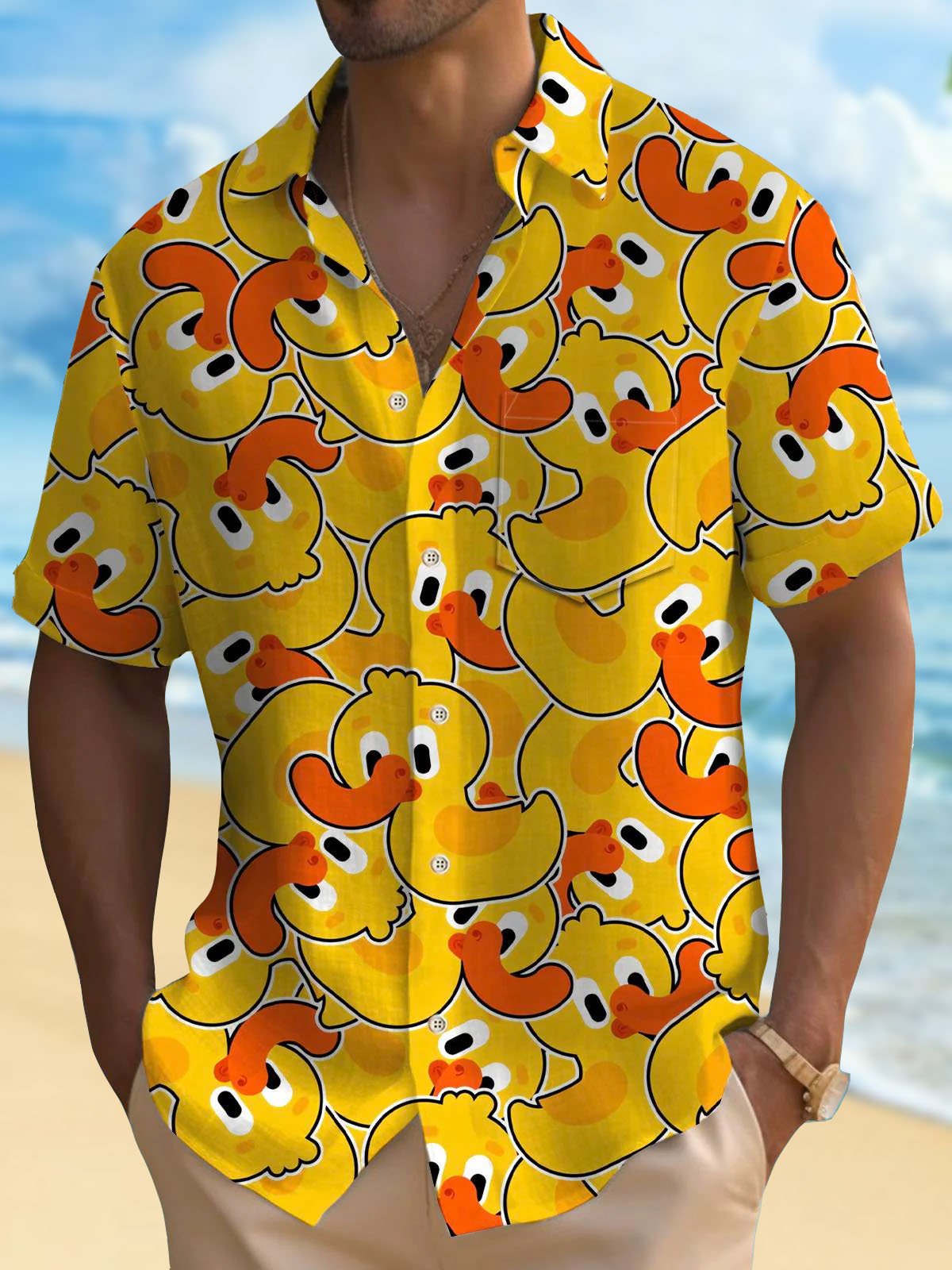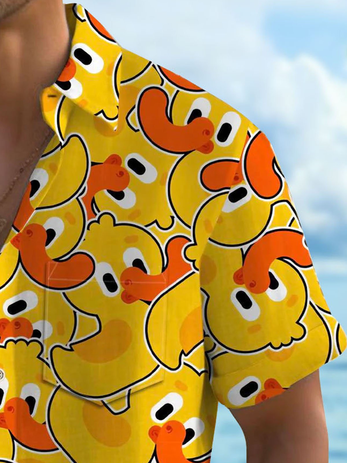 Alohadaddy Hawaiian Duck Print Men's Button Pocket Short Sleeve Shirt