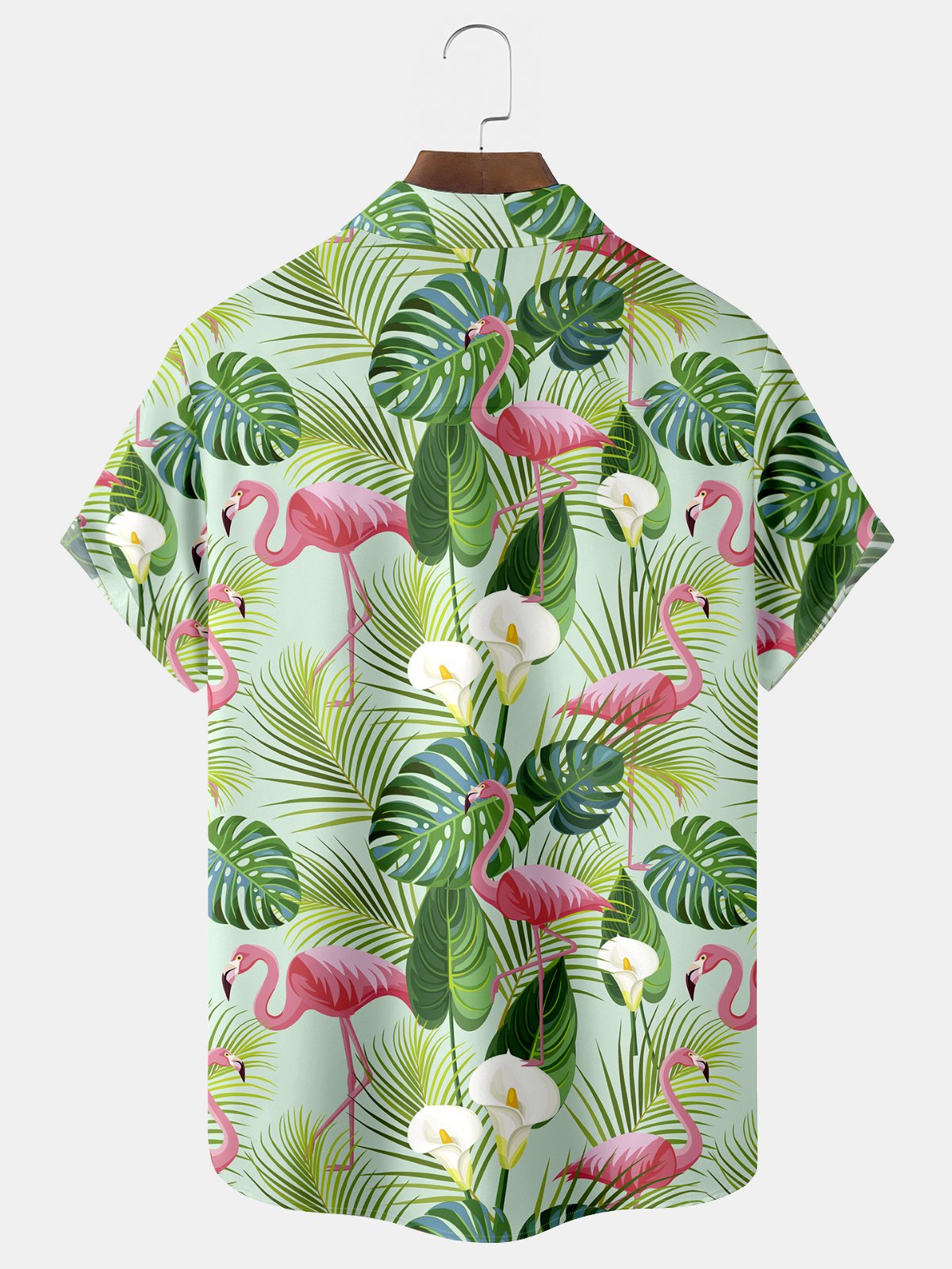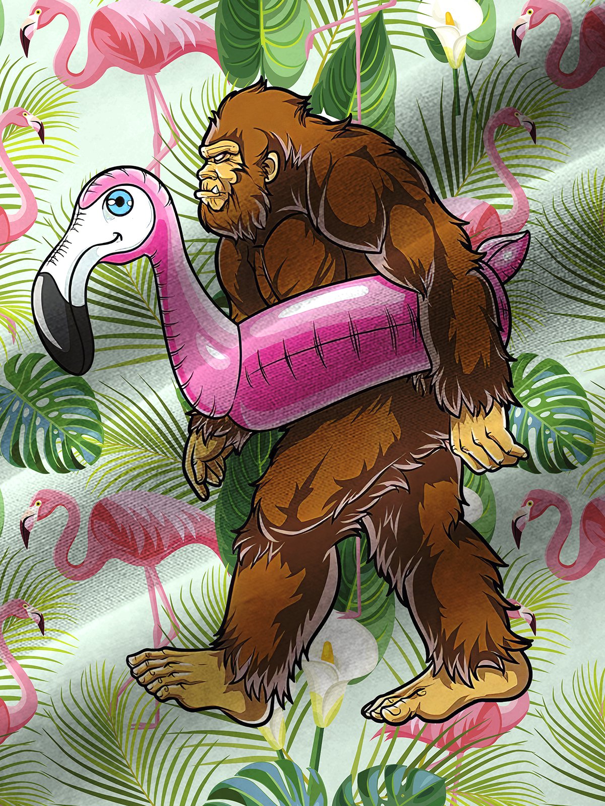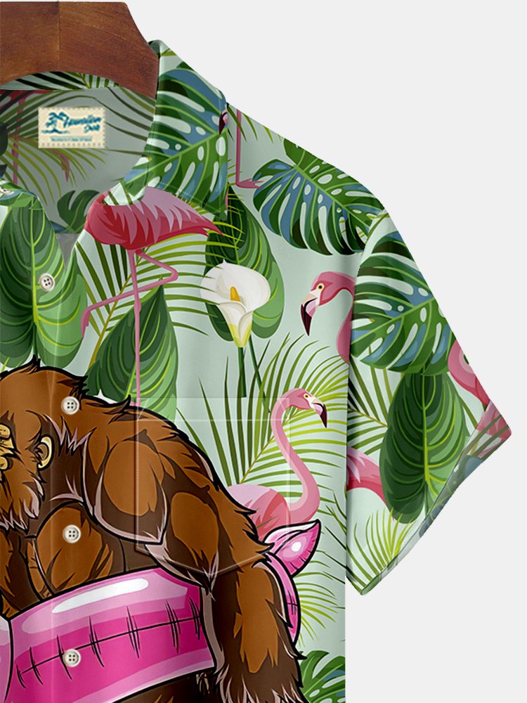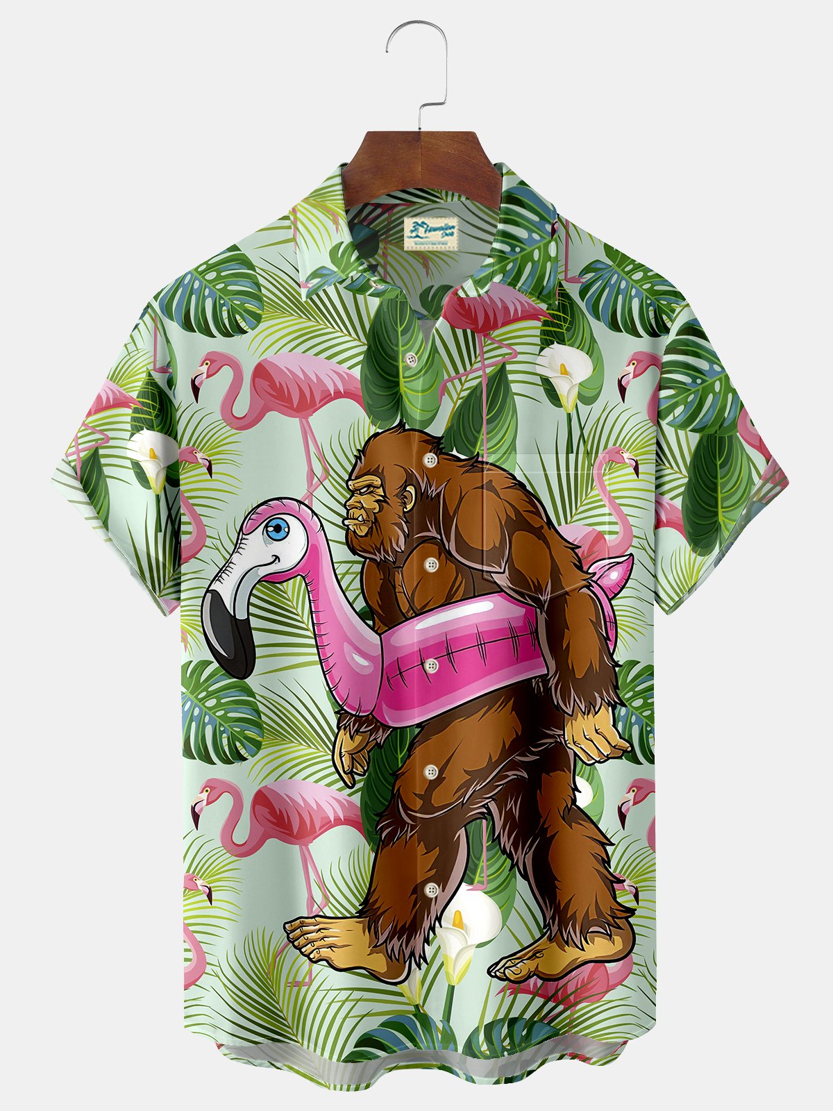 Alohadaddy Flamingo Bigfoot Print Beach Men's Hawaiian Oversized Shirt with Pockets