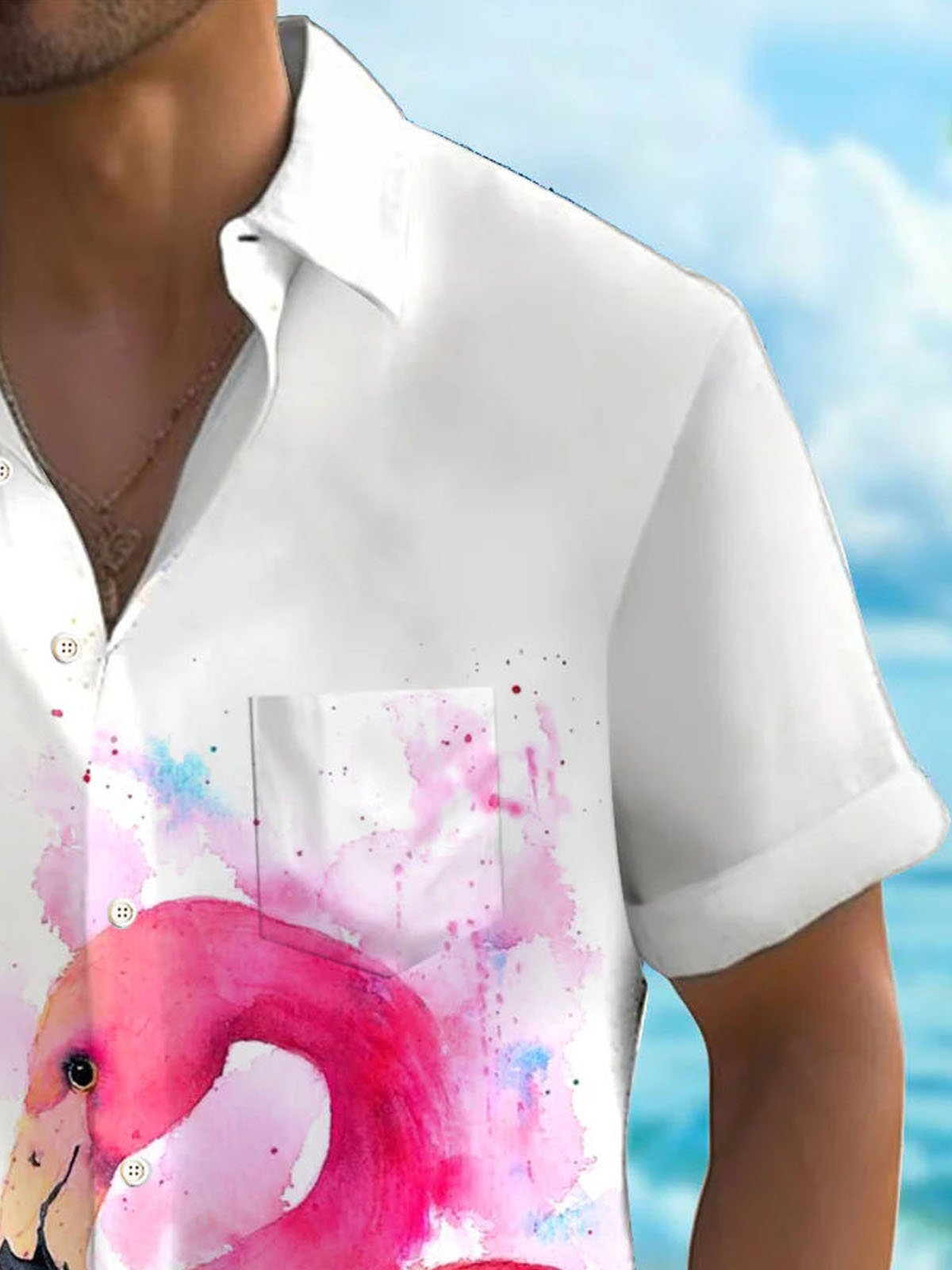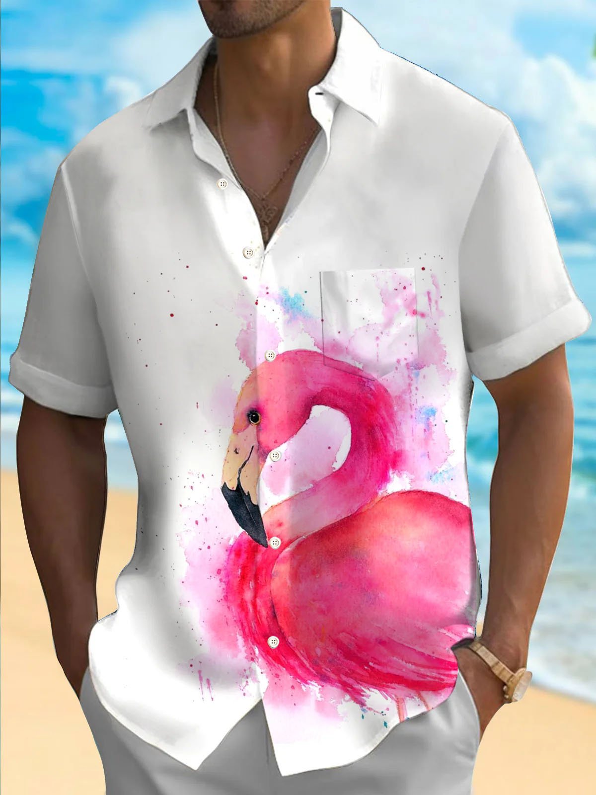 Alohadaddy Hawaii Flamingo Printed Men's Button Pocket Short Sleeve Shirt