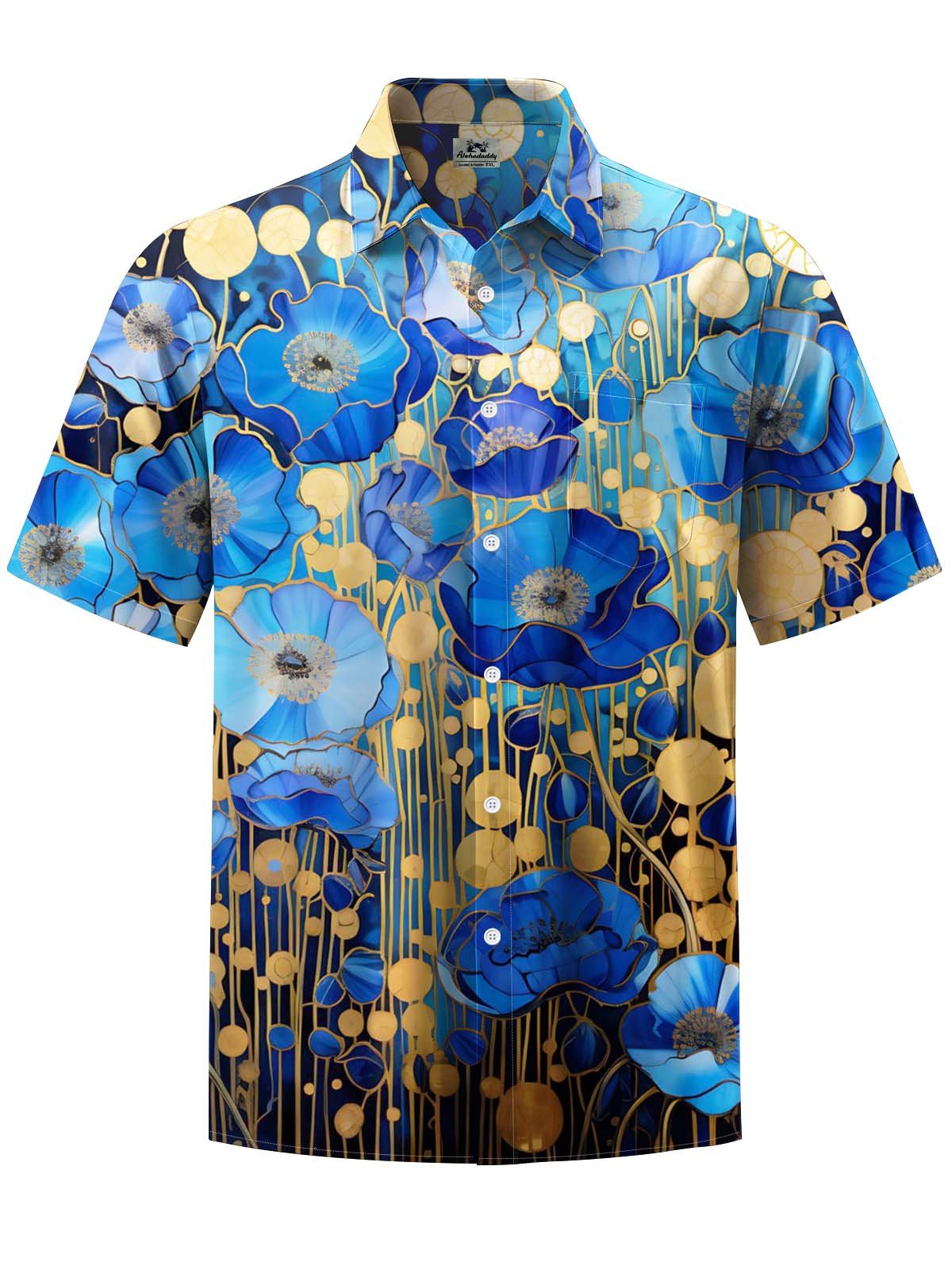 Alohadaddy® Casual Floral Print Pocket Stretch Men's Short Sleeve Shirt Big & Tall