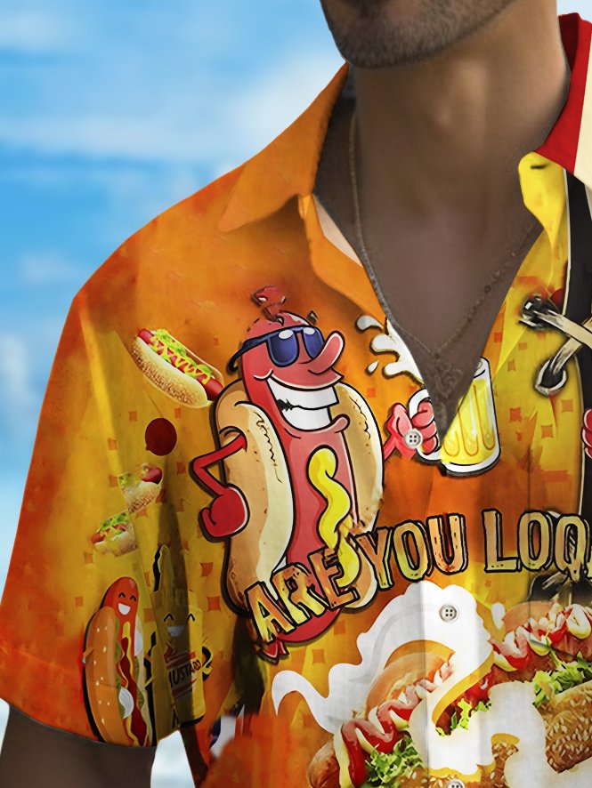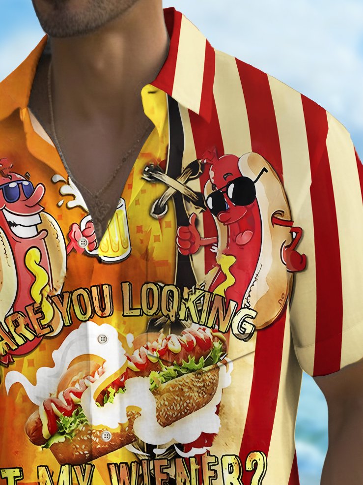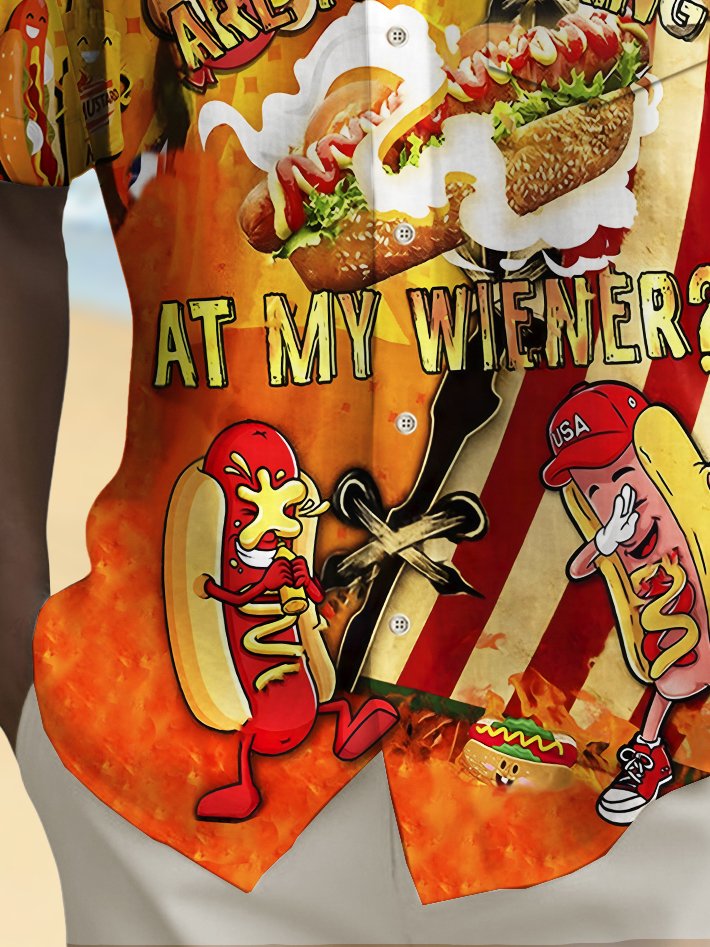 Alohadaddy Holiday Men's Independence Day Flag Hot Dog Print Casual Breathable Short Sleeve Shirt Big Tall