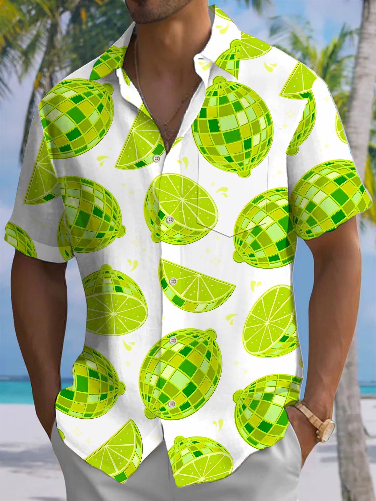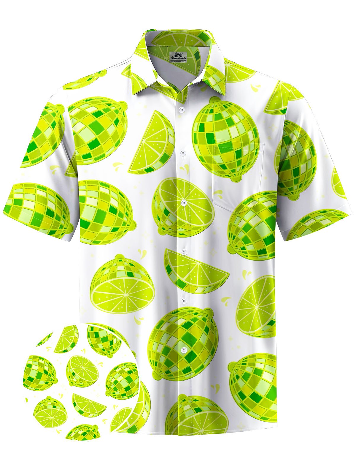 Alohadaddy® Casual Lemon Music Ball Print Moisture-wicking Men's Short Sleeve Shirt Big & Tall
