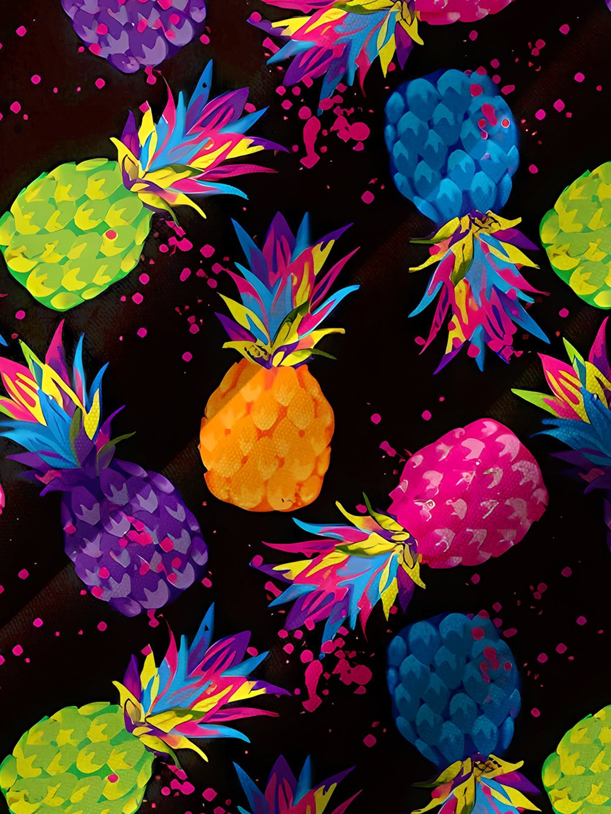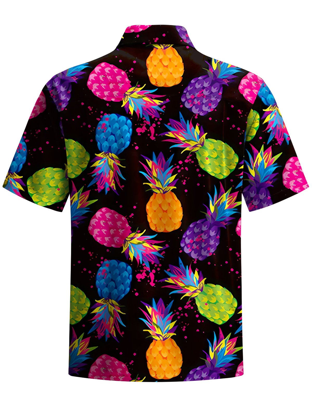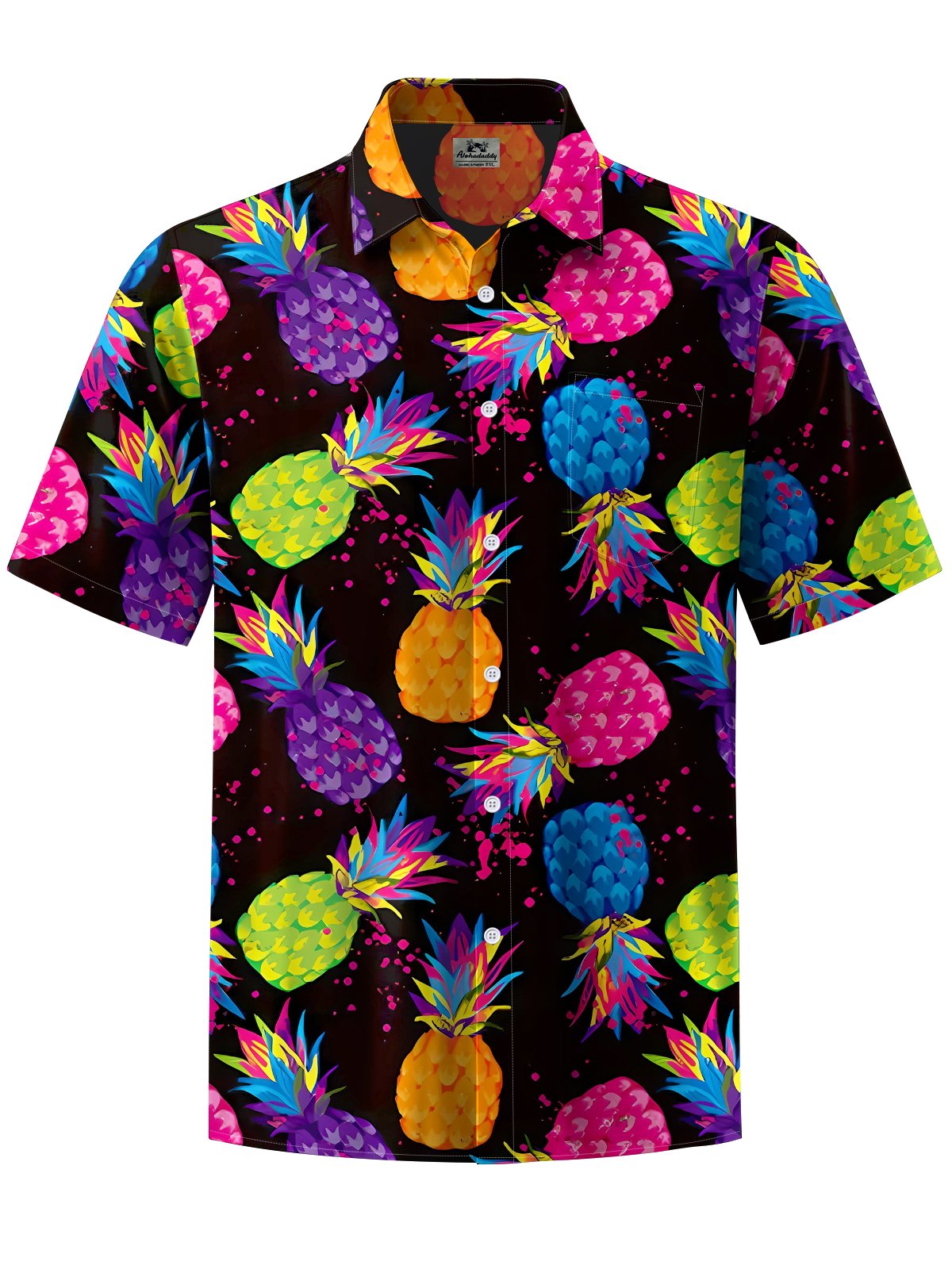 Alohadaddy® Men's Casual Hawaiian Pineapple Art Print Chest Pocket Short Sleeve Shirt Big & Tall