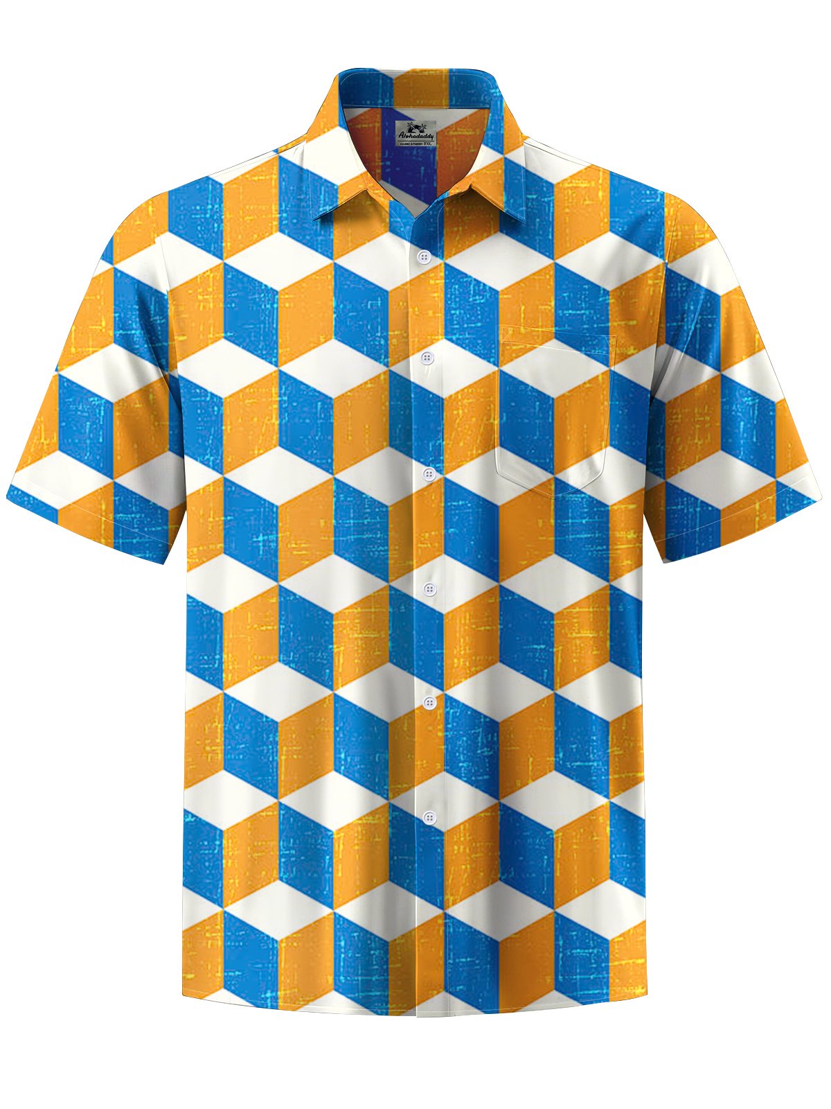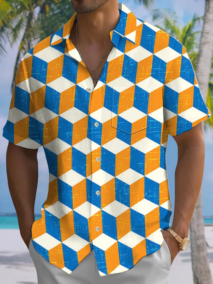 Alohadaddy® Casual Cube Print Pocket Men's Stretch Short Sleeve Shirt Big & Tall