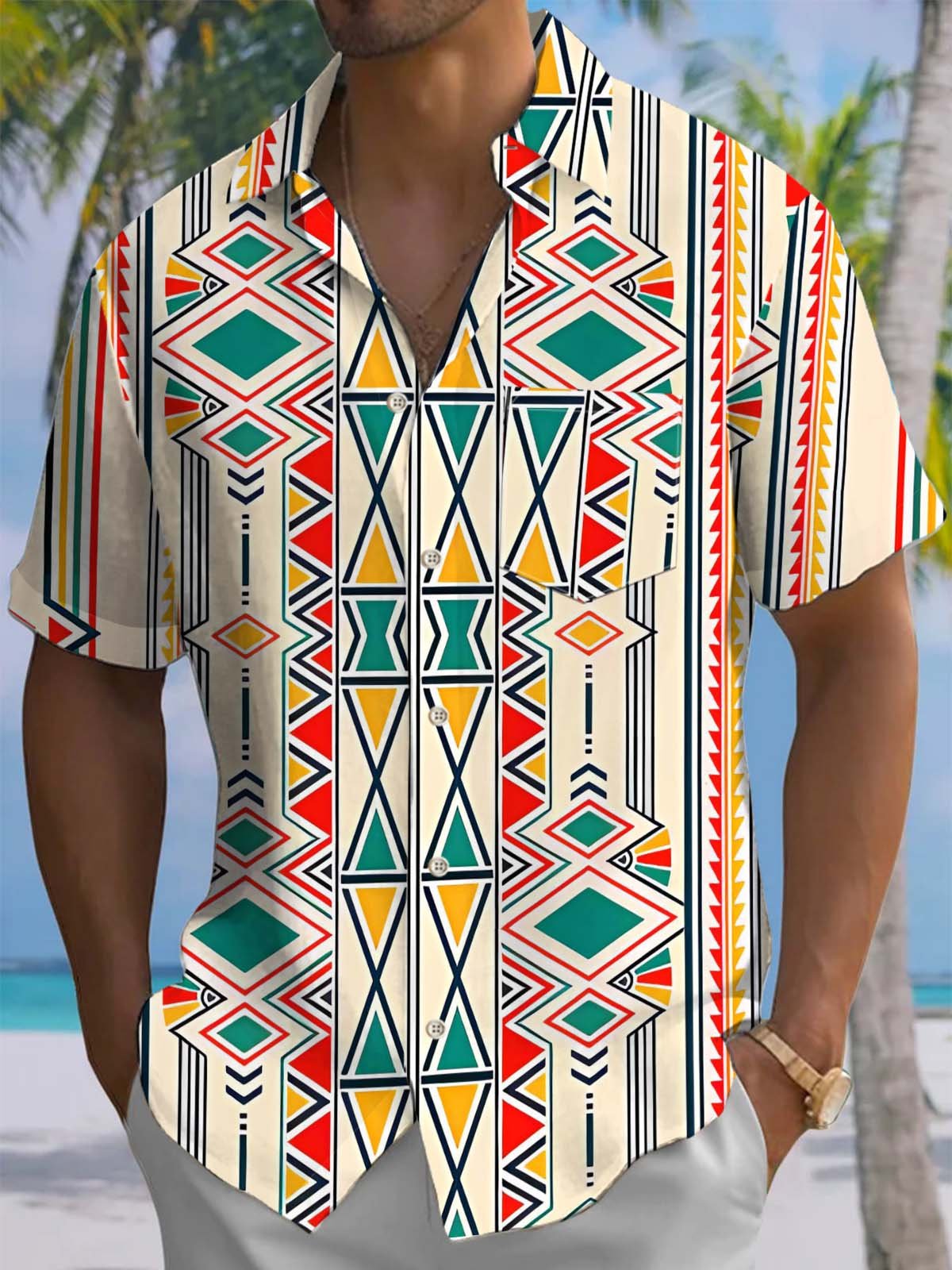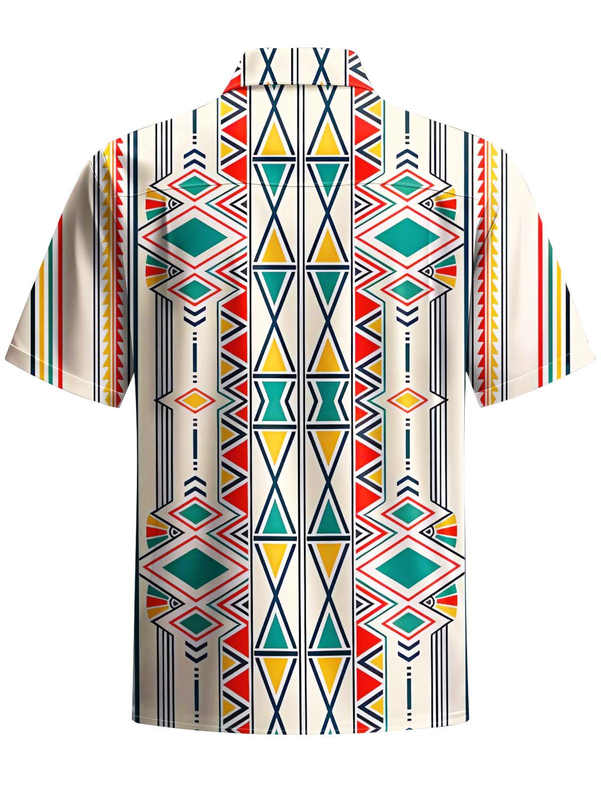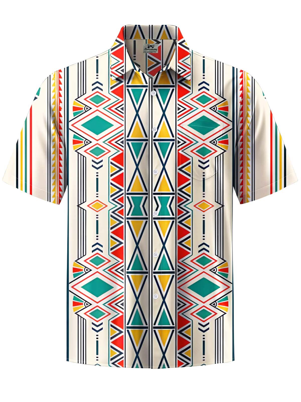 Alohadaddy® Casual Ethnic Geometric Art Print Chest Pocket Stretch Men's Short Sleeve Shirt Big & Tall