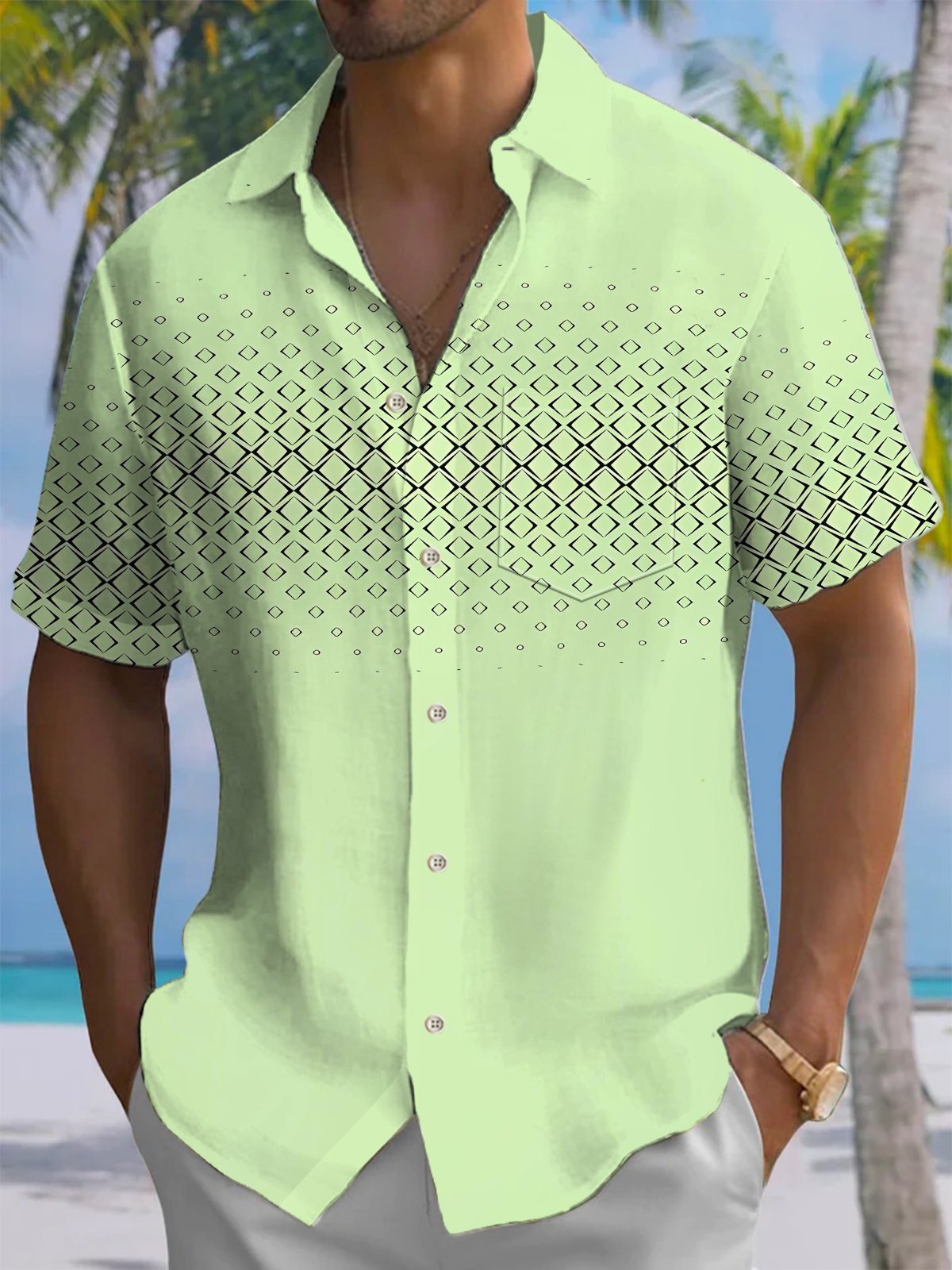 Alohadaddy® Casual Geometric Art Print Chest Pocket Men's Short Sleeve Shirt Big & Tall