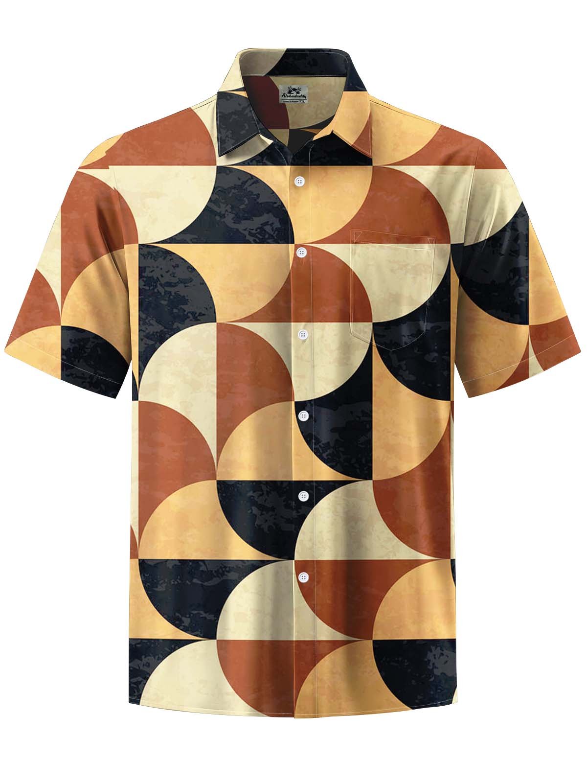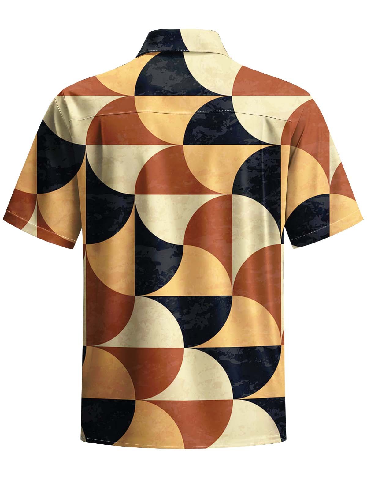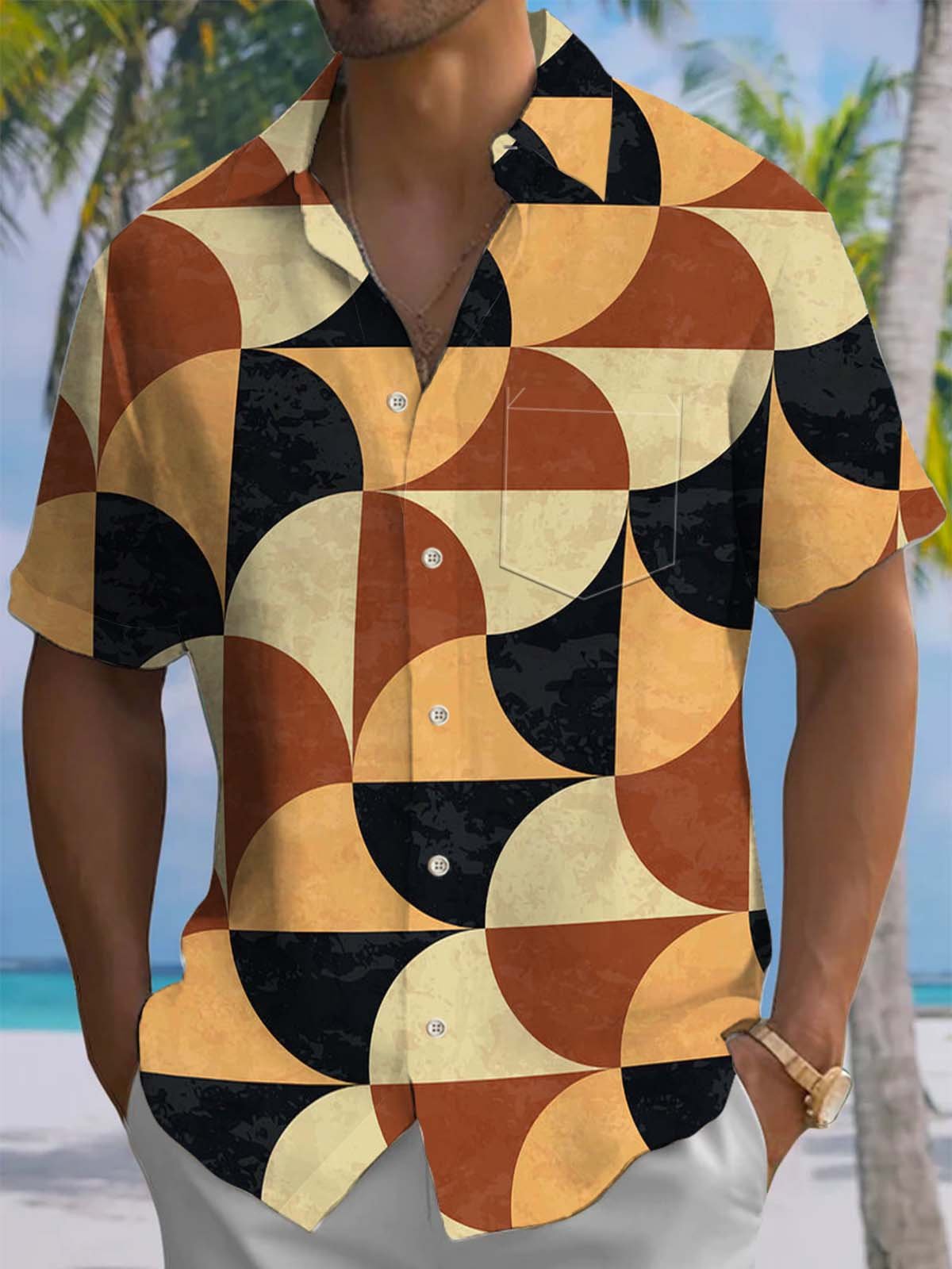 Alohadaddy® Casual Geometric Art Print Chest Pocket Men's Short Sleeve Shirt Big & Tall