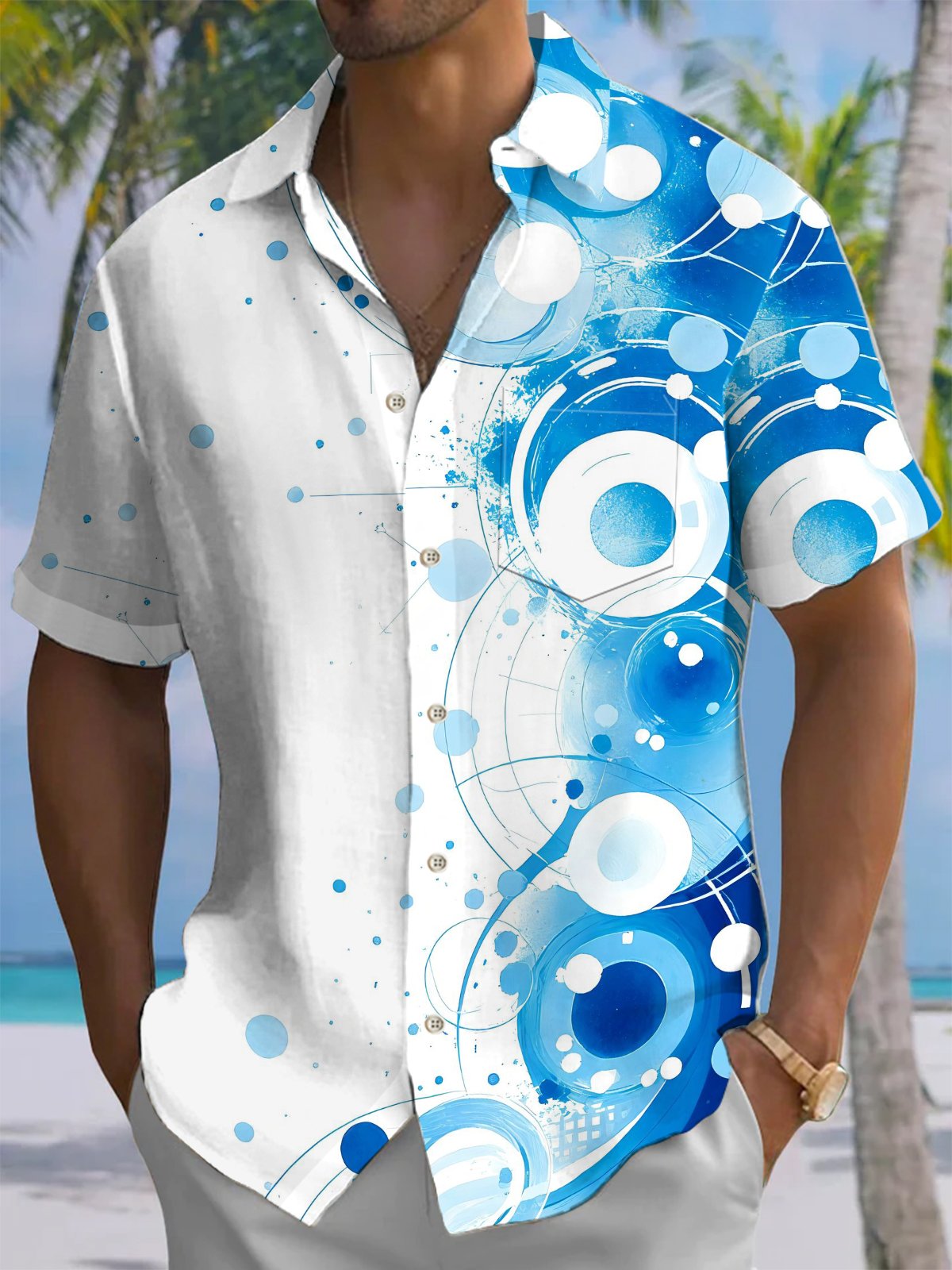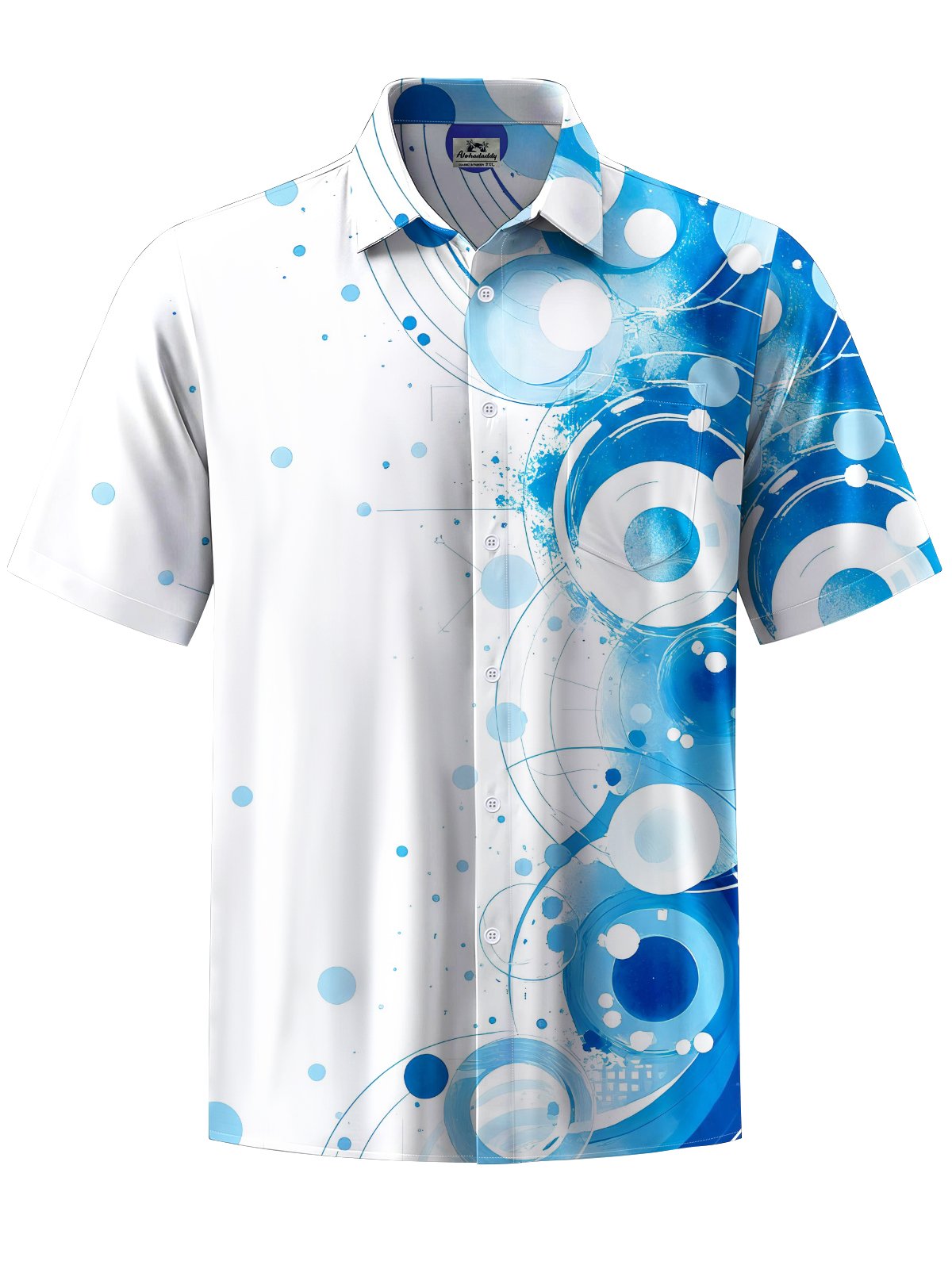 Alohadaddy® Casual Geometric Art Print Chest Pocket Men's Stretch Short Sleeve Shirt Big & Tall