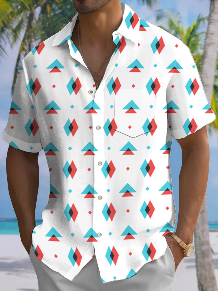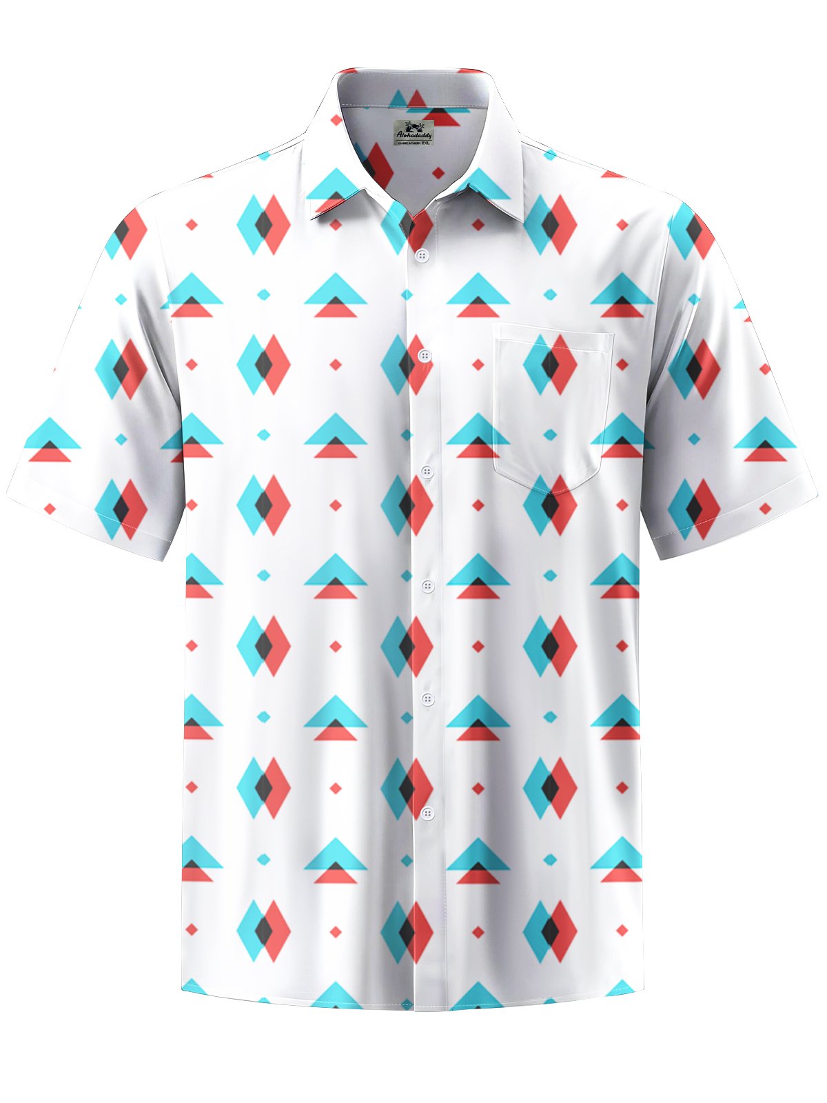 Alohadaddy® Casual Geometric Art Print Men's Short Sleeve Stretch Shirt Big & Tall