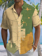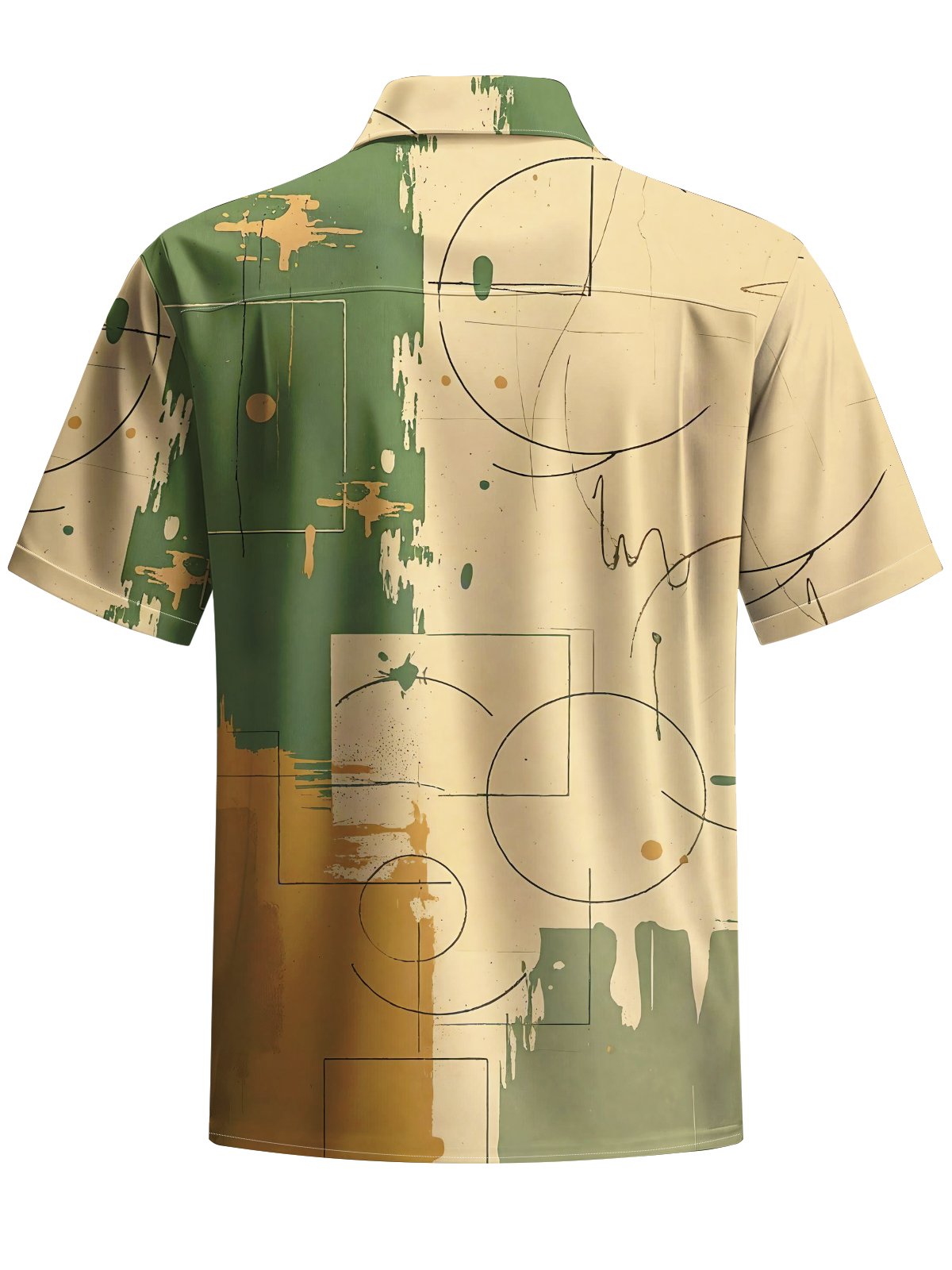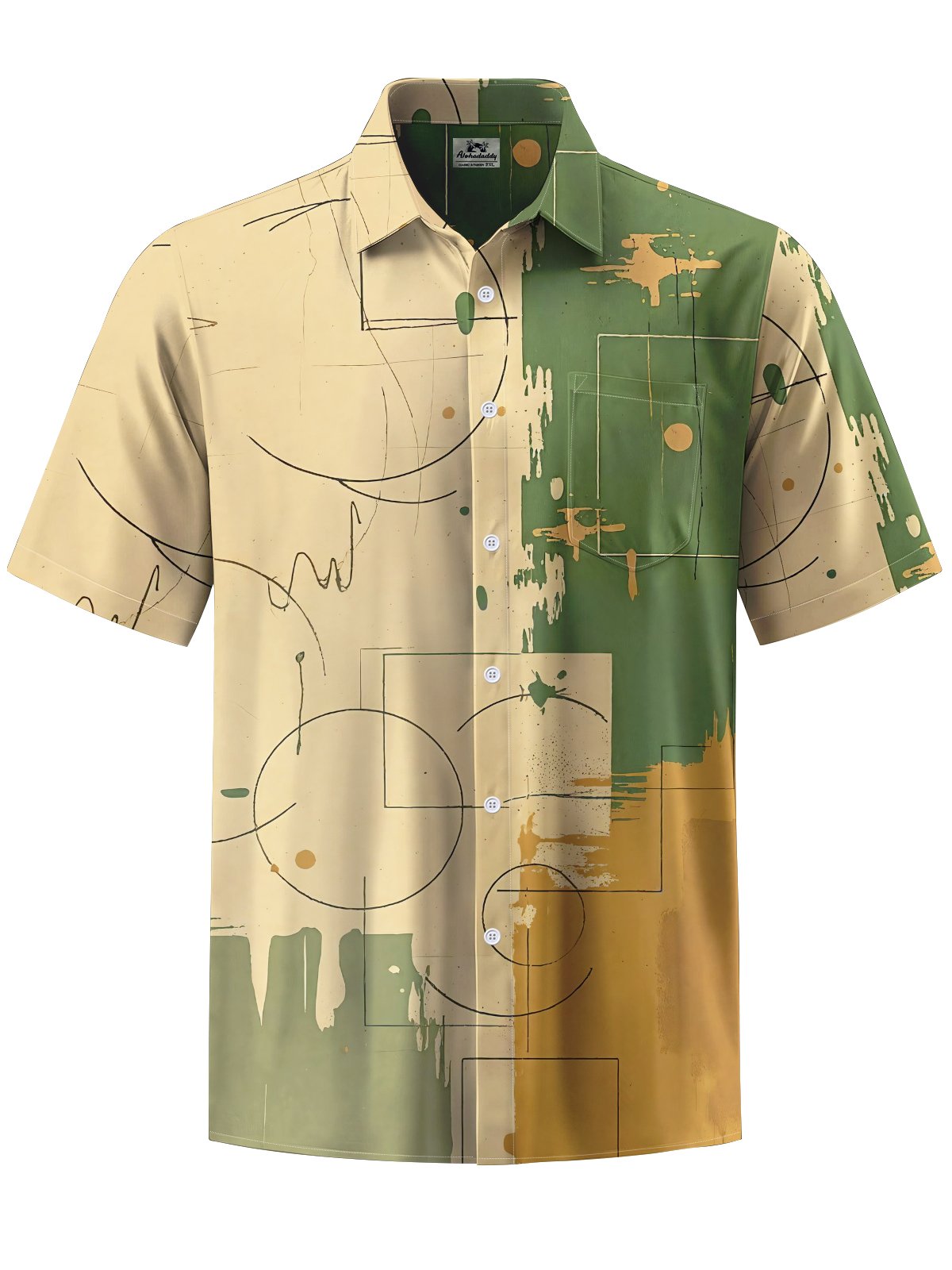 Alohadaddy® Casual Geometric Art Print Pocket Men's Stretch Short Sleeve Shirt Big & Tall