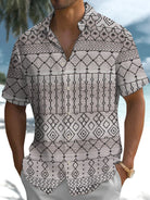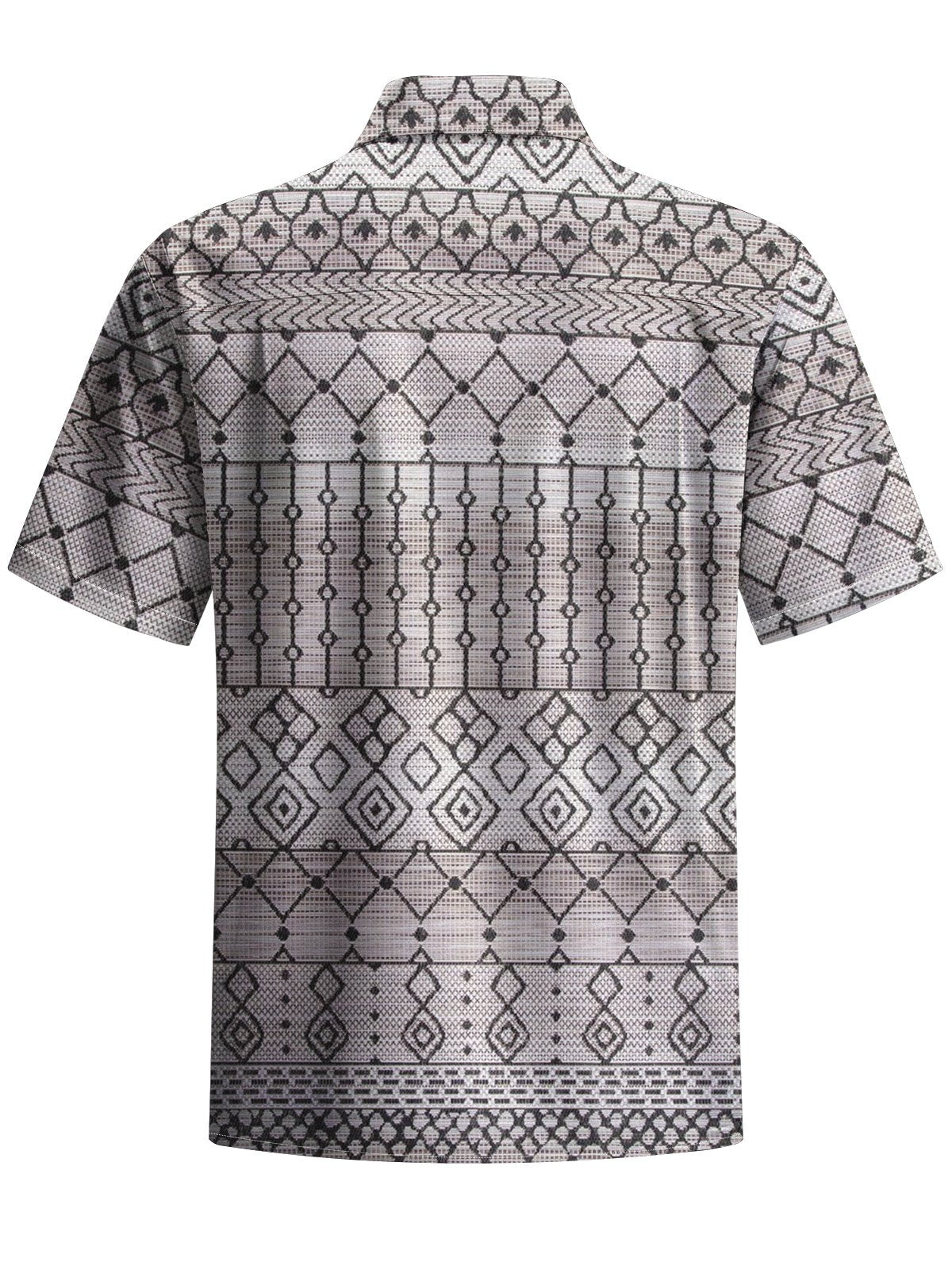 Alohadaddy® Casual Geometric Art Print Pocket Stretch Men's Short Sleeve Shirt Big & Tall