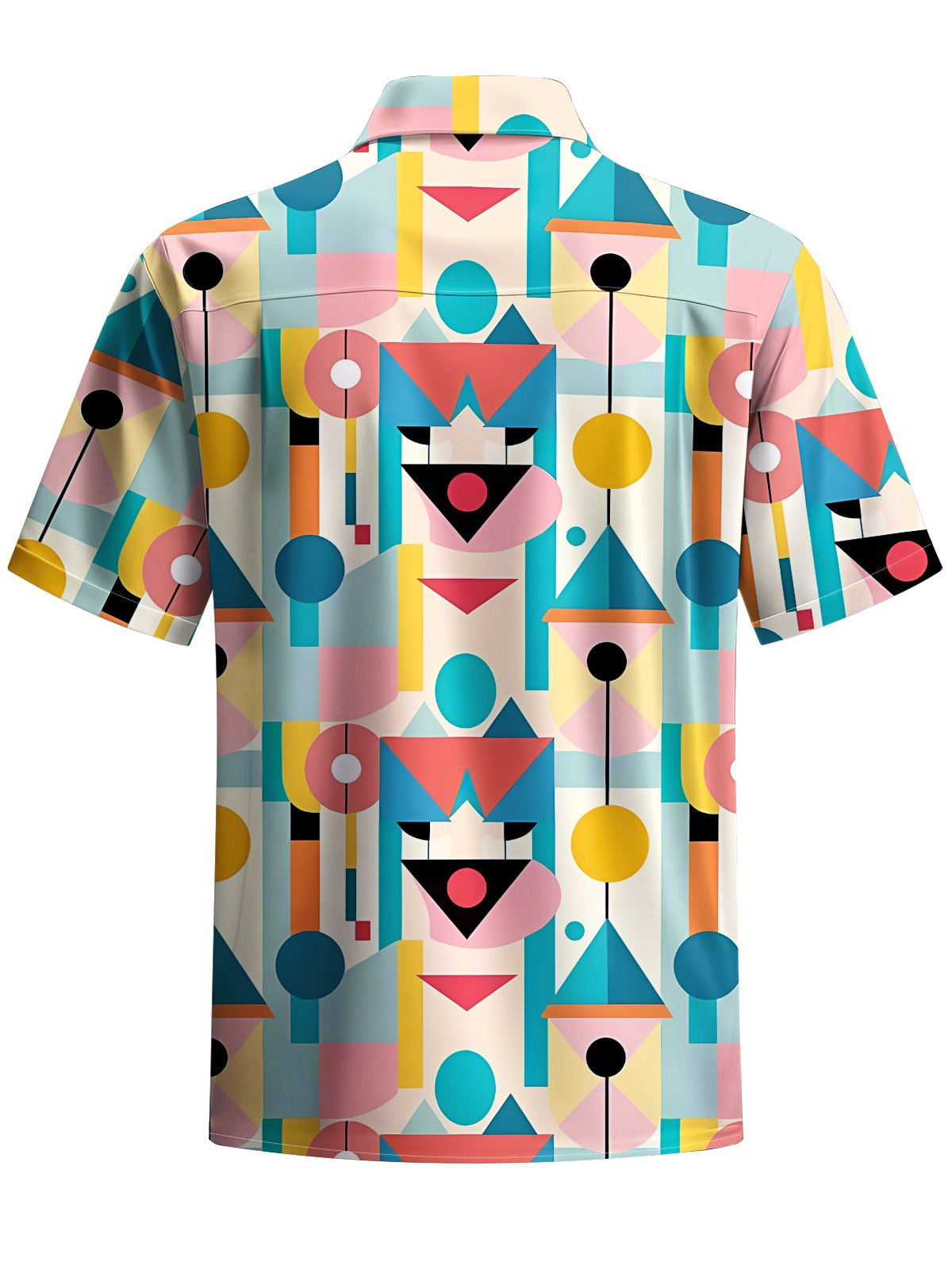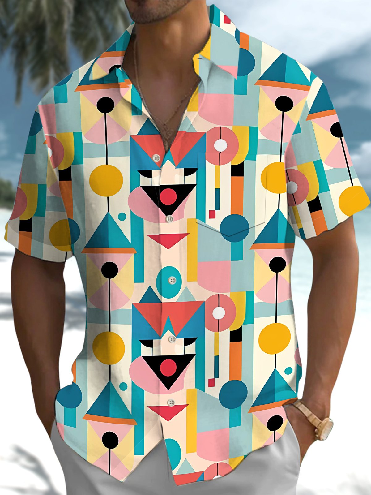 Alohadaddy® Casual Geometric Art Print Pocket Stretch Men's Short Sleeve Shirt Big & Tall