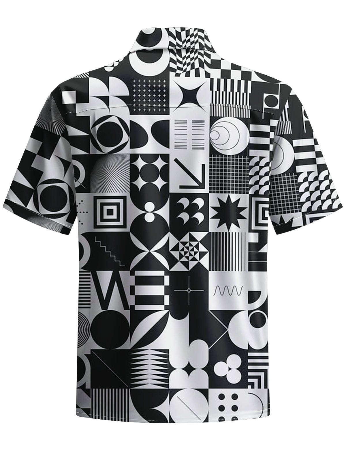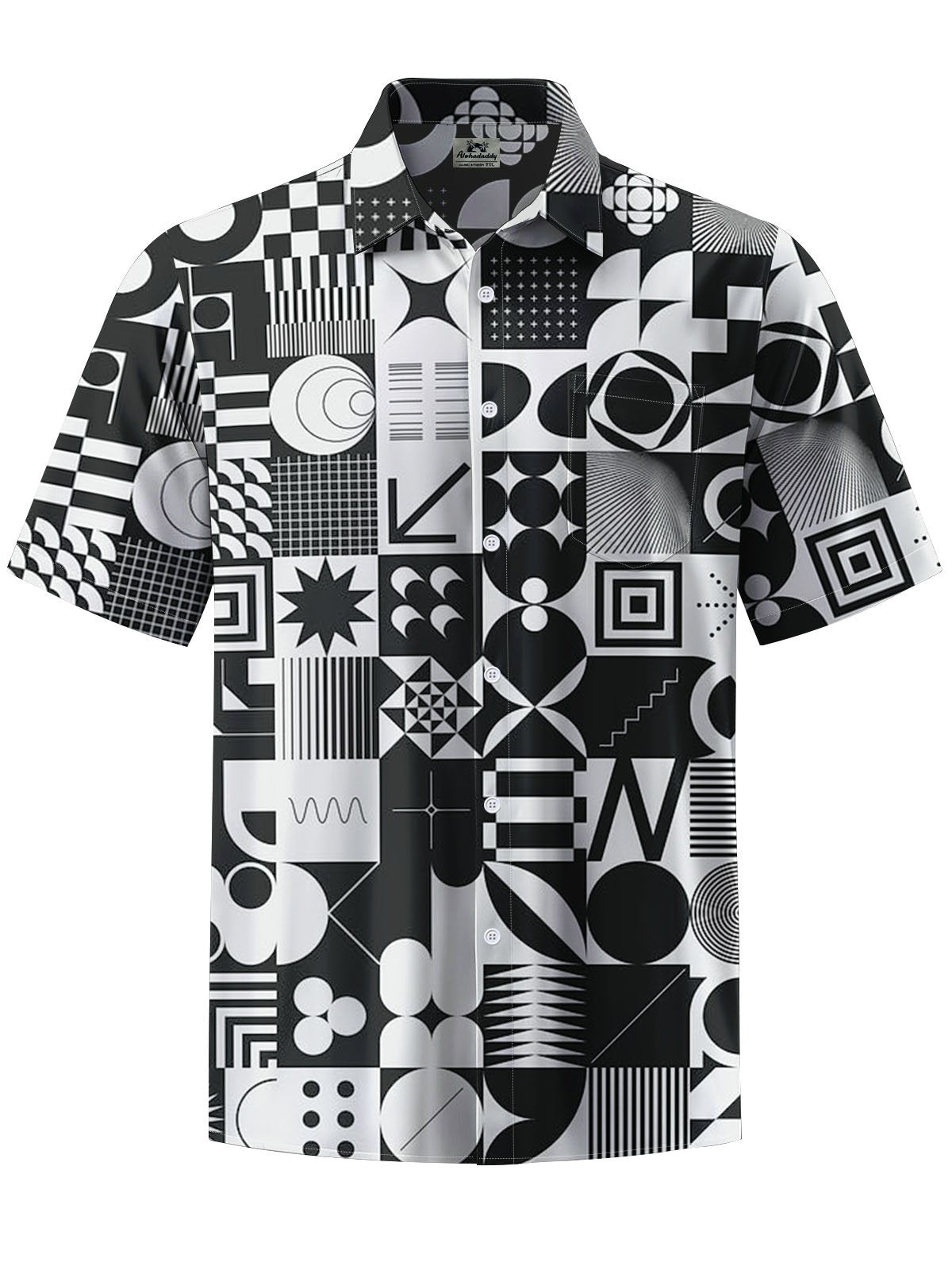 Alohadaddy® Casual Geometric Art Print Pocket Stretch Men's Short Sleeve Shirt Big & Tall