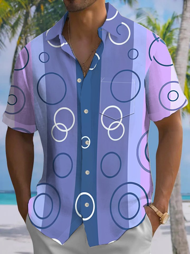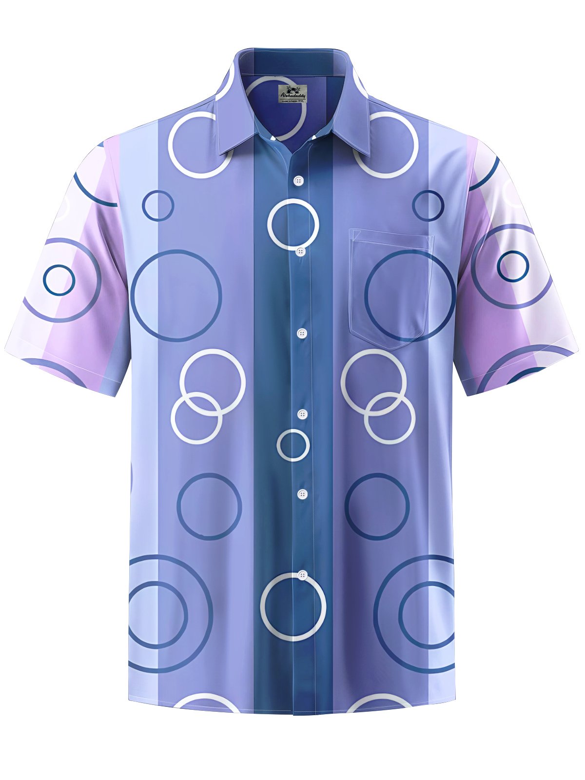 Alohadaddy® Casual Geometric Circle Art Print Chest Pocket Men's Short Sleeve Shirt Big & Tall