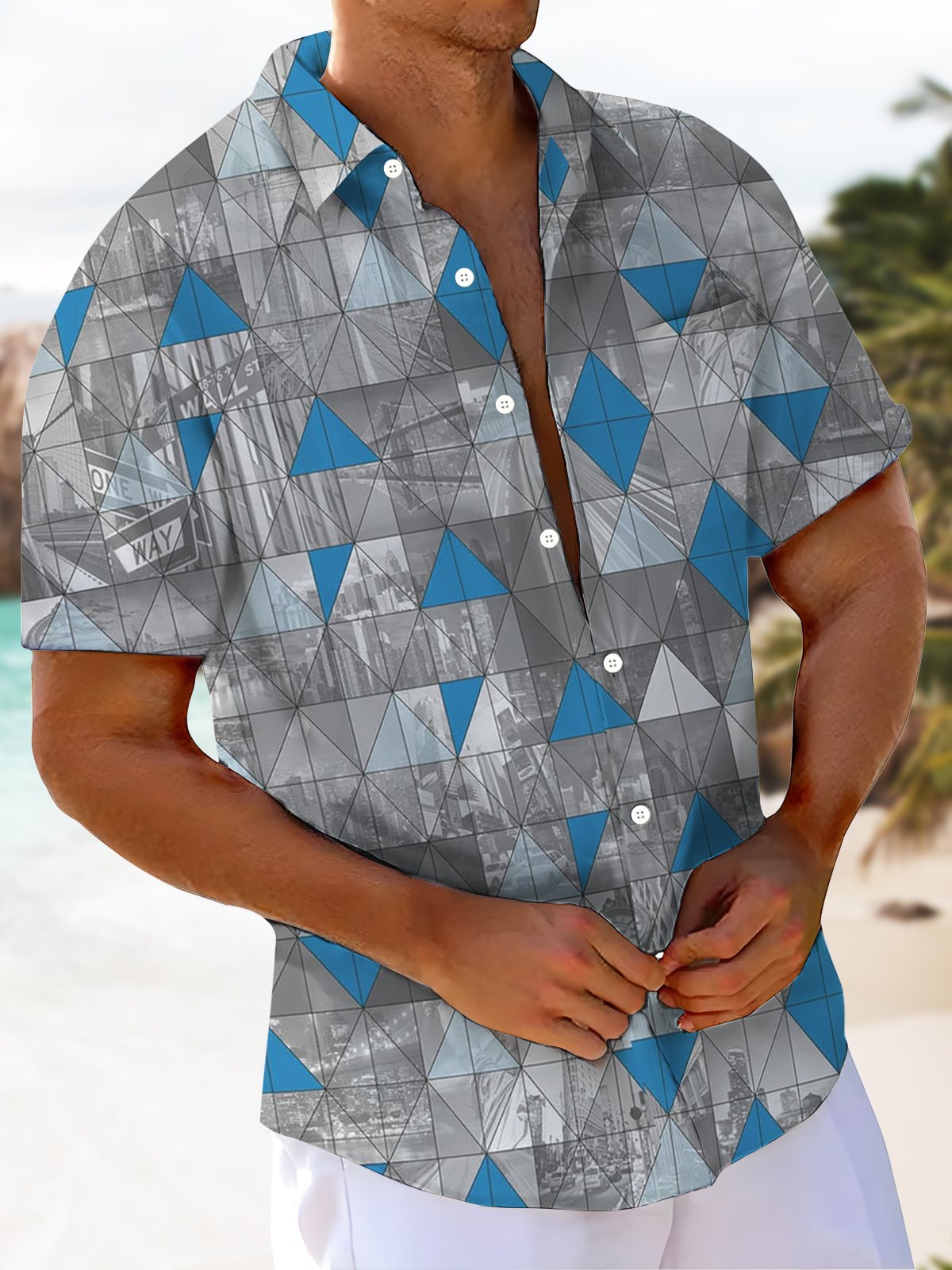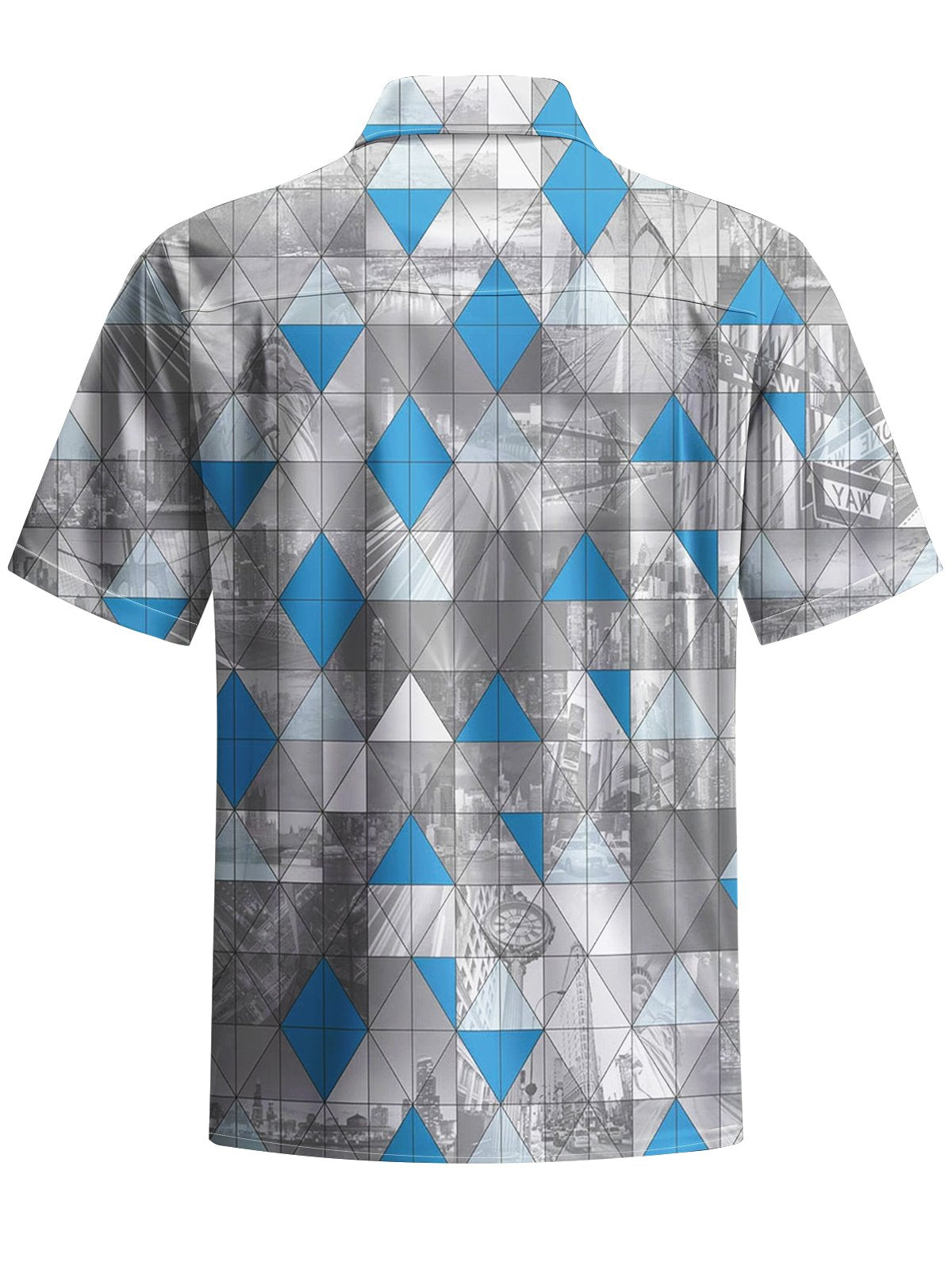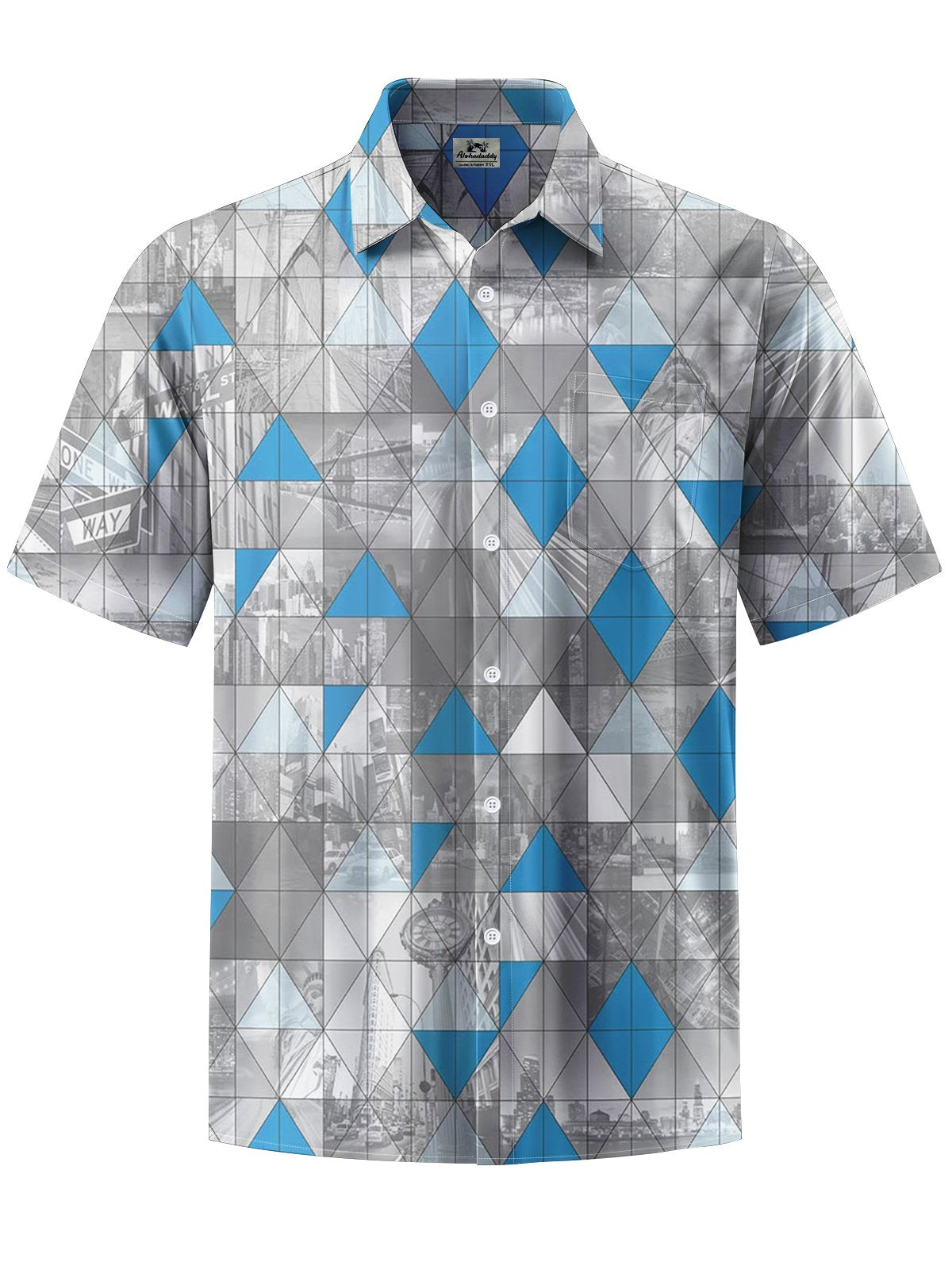 Alohadaddy® Casual Geometric Diamond Art Print Chest Pocket Men's Short Sleeve Shirt Big & Tall