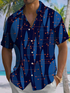 Alohadaddy® Casual Geometric Plaid Art Print Chest Pocket Men's Short Sleeve Shirt Big & Tall
