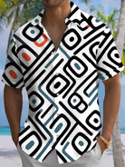 Alohadaddy® Casual Geometric Print Button Pocket Stretch Men's Short Sleeve Shirt Big & Tall