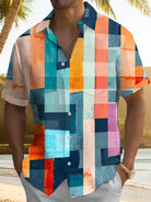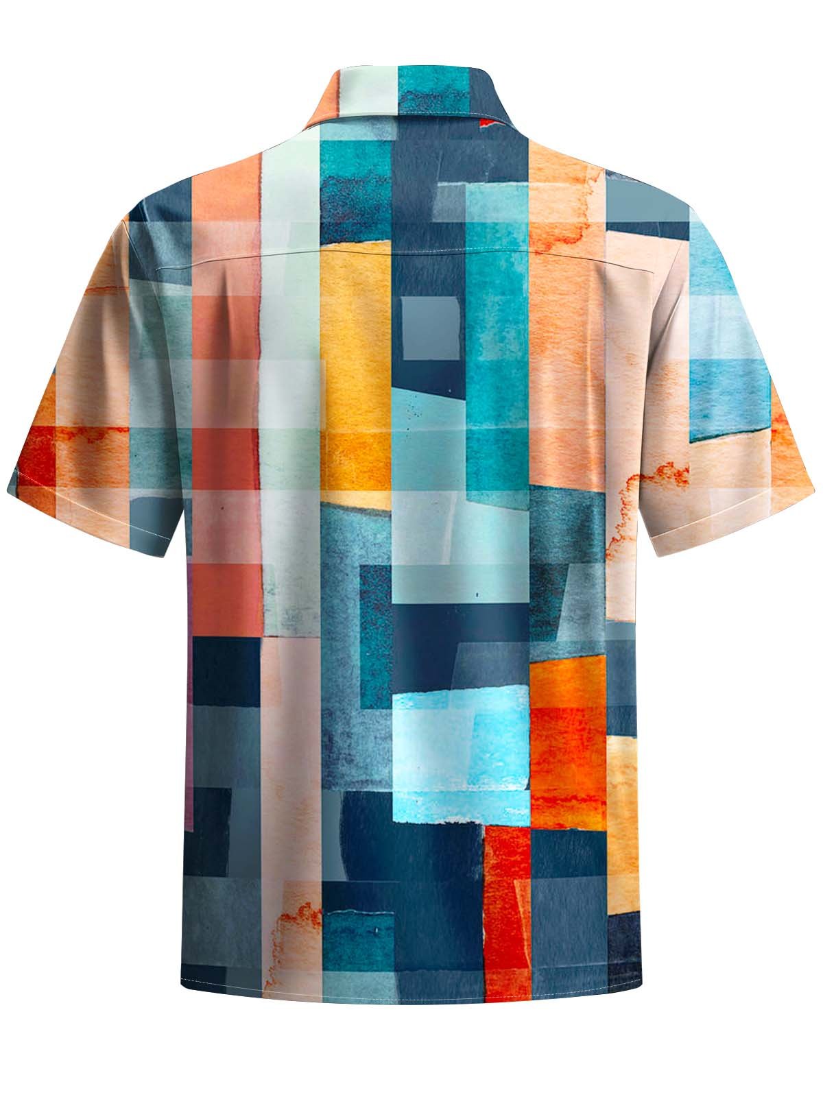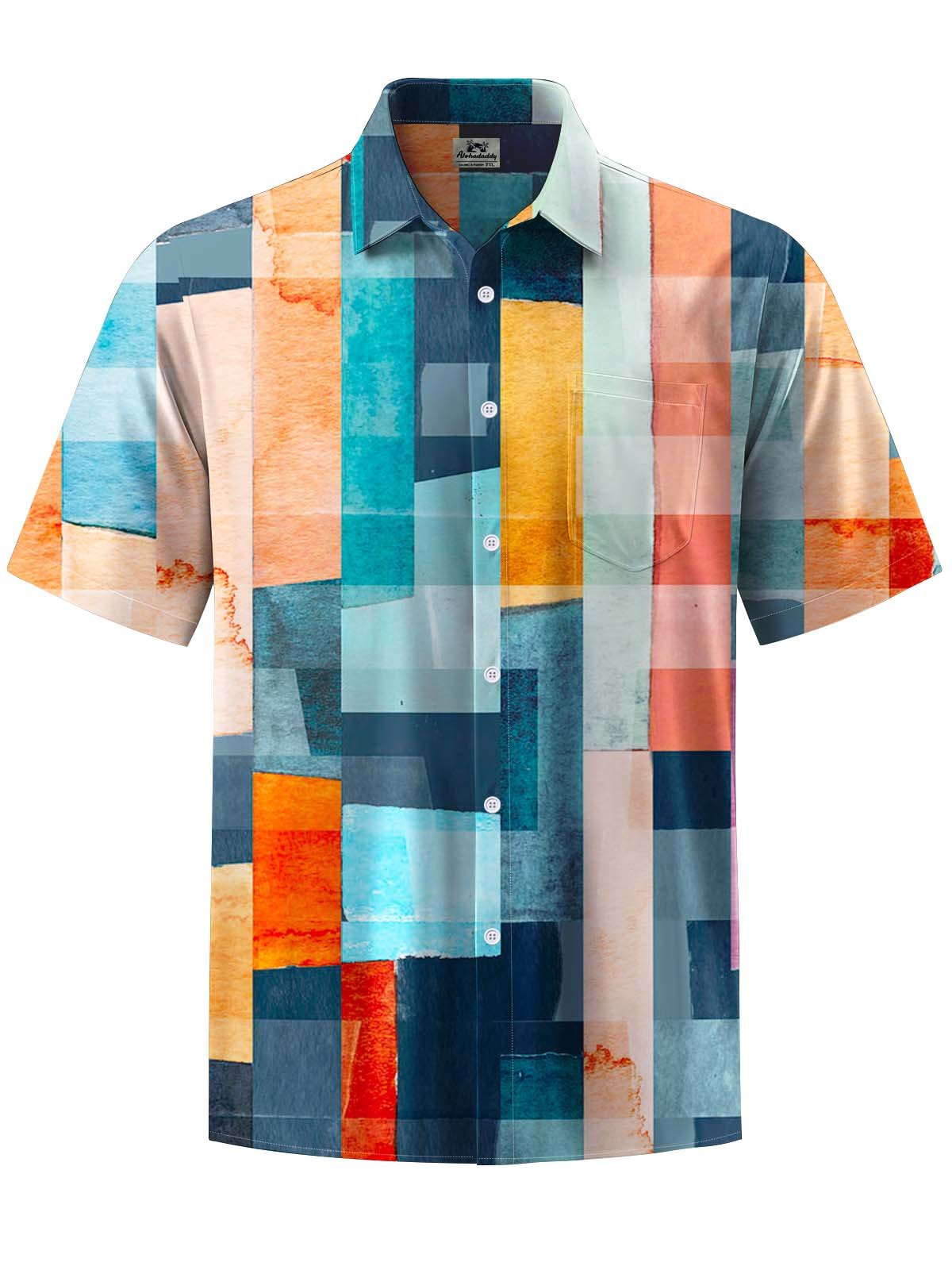 Alohadaddy® Casual Geometric Print Chest Pocket Stretch Men's Short Sleeve Shirt Big & Tall