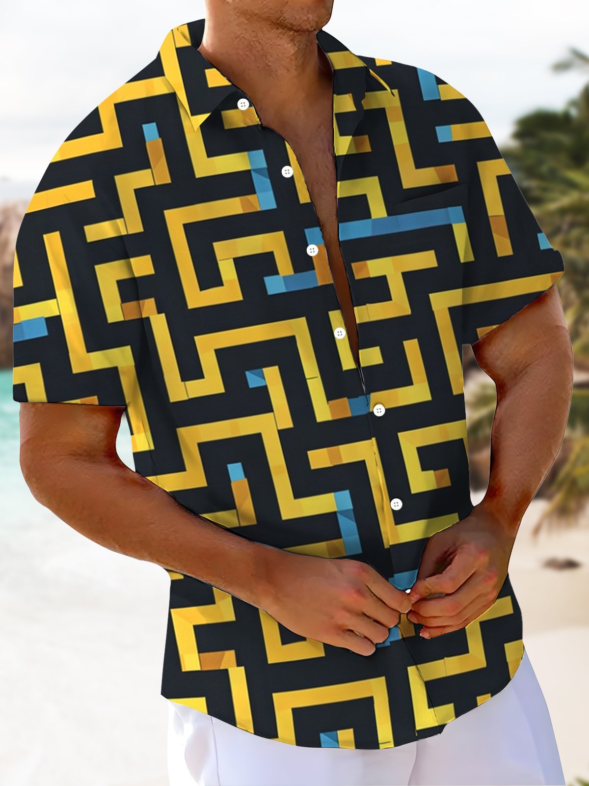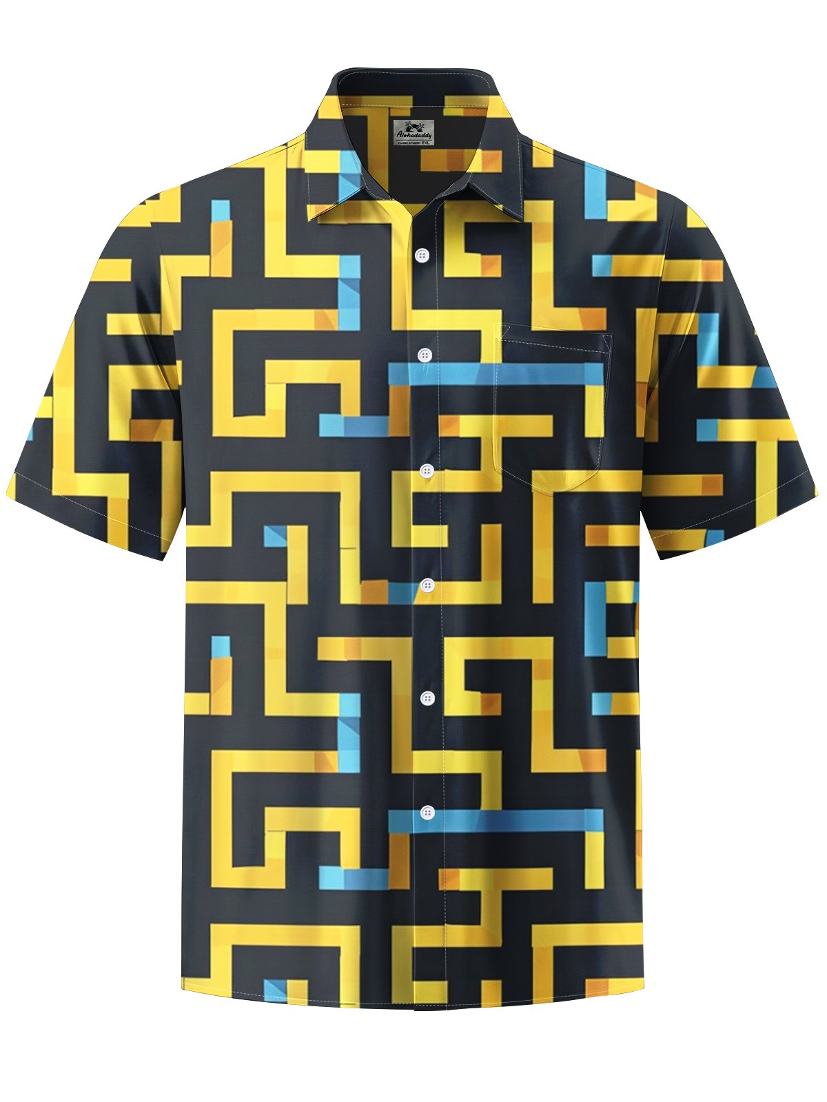 Alohadaddy® Casual Geometric Print Men's Short Sleeve Stretch Shirt Big & Tall