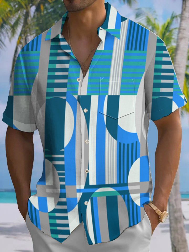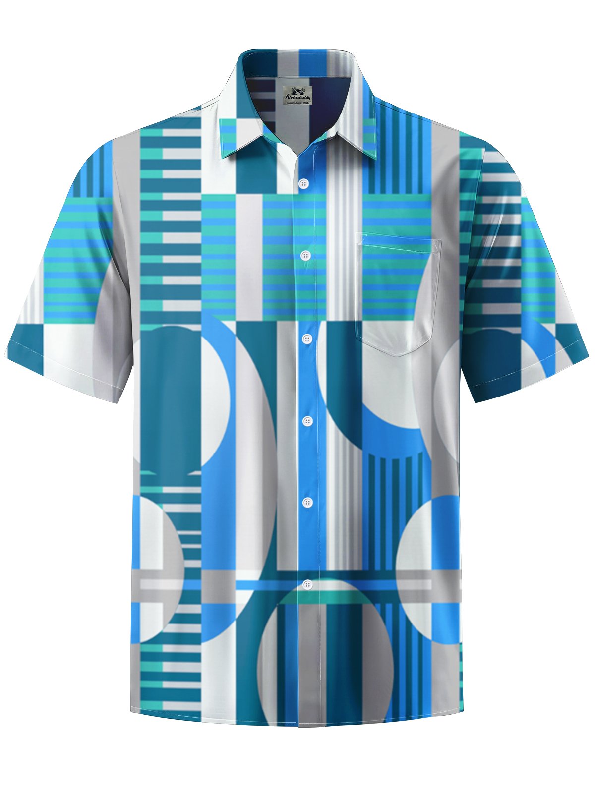 Alohadaddy® Casual Geometric Stripe Art Print Men's Short Sleeve Stretch Shirt Big & Tall