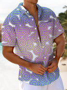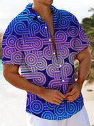 Alohadaddy® Casual Gradient Abstract Art Print Chest Pocket Men's Short Sleeve Shirt Big & Tall