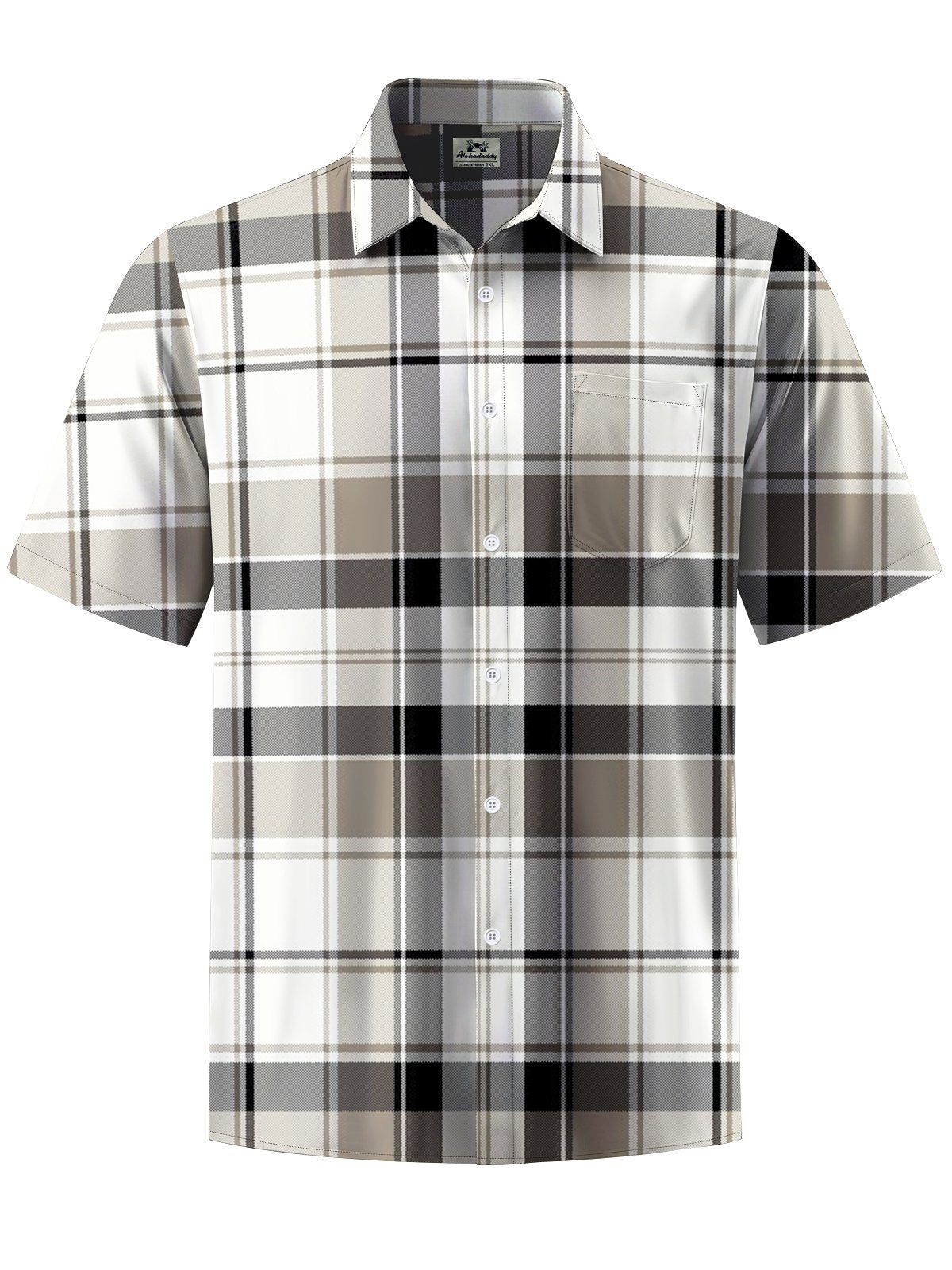 Alohadaddy® Casual Plaid Art Print Chest Pocket Men's Short Sleeve Shirt Big & Tall