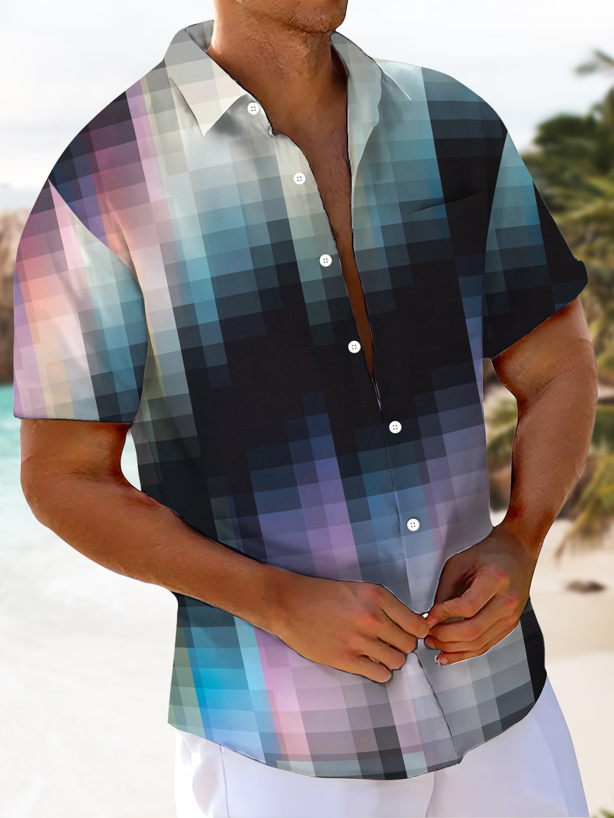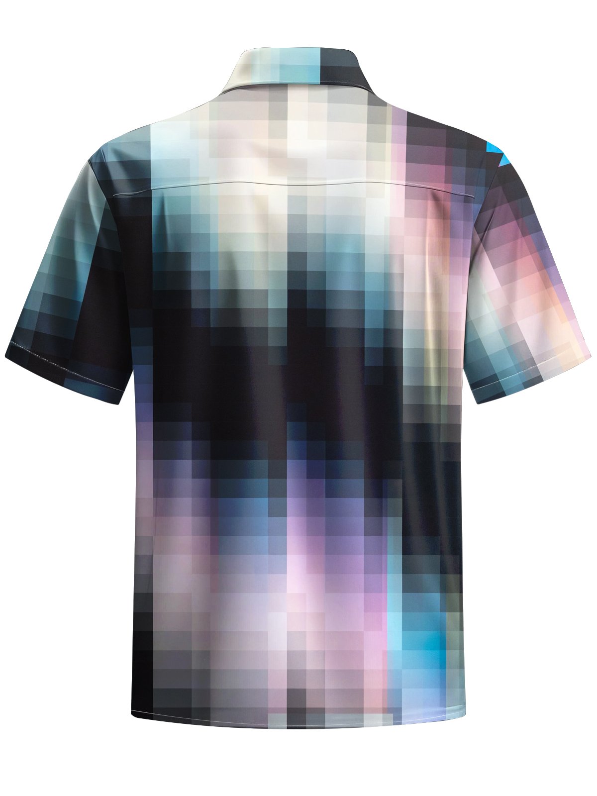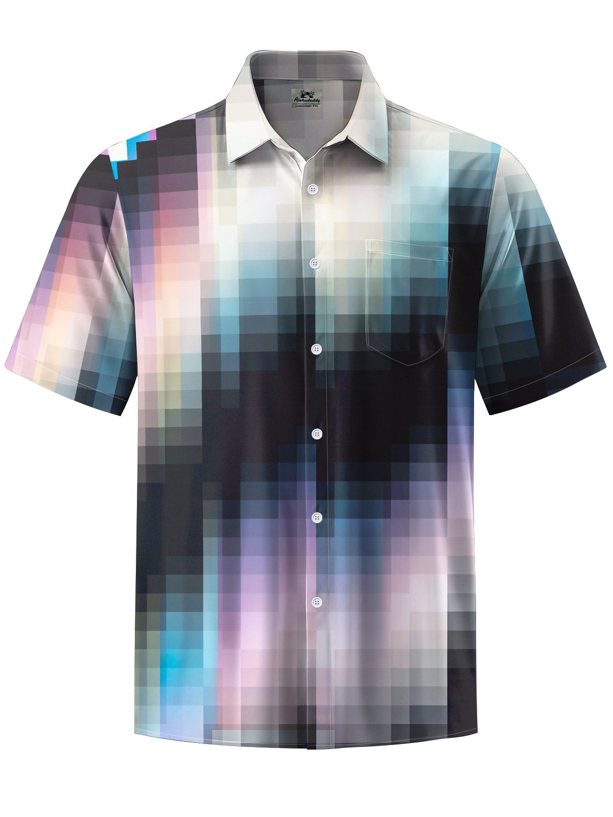 Alohadaddy® Casual Plaid Gradient Art Print Chest Pocket Men's Short Sleeve Shirt Big & Tall