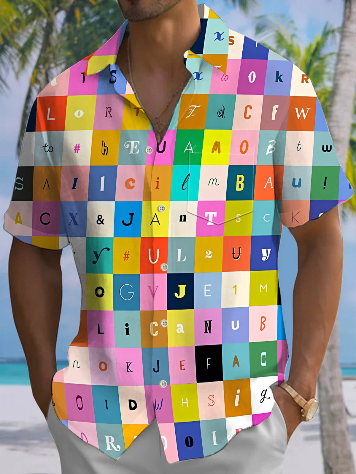 Alohadaddy® Casual Plaid Lettering Abstract Print Art Pocket Stretch Men's Short Sleeve Shirt Big & Tall