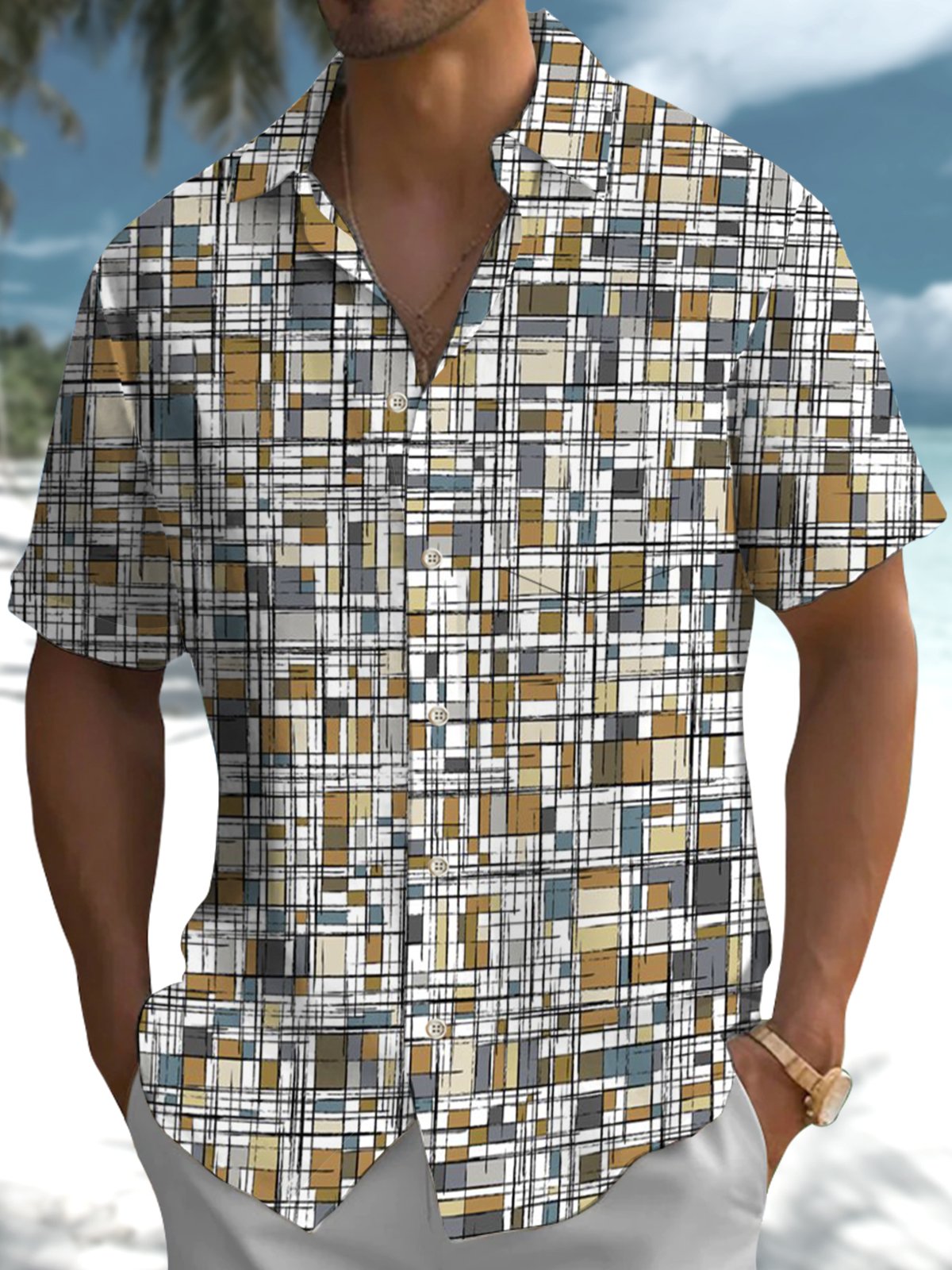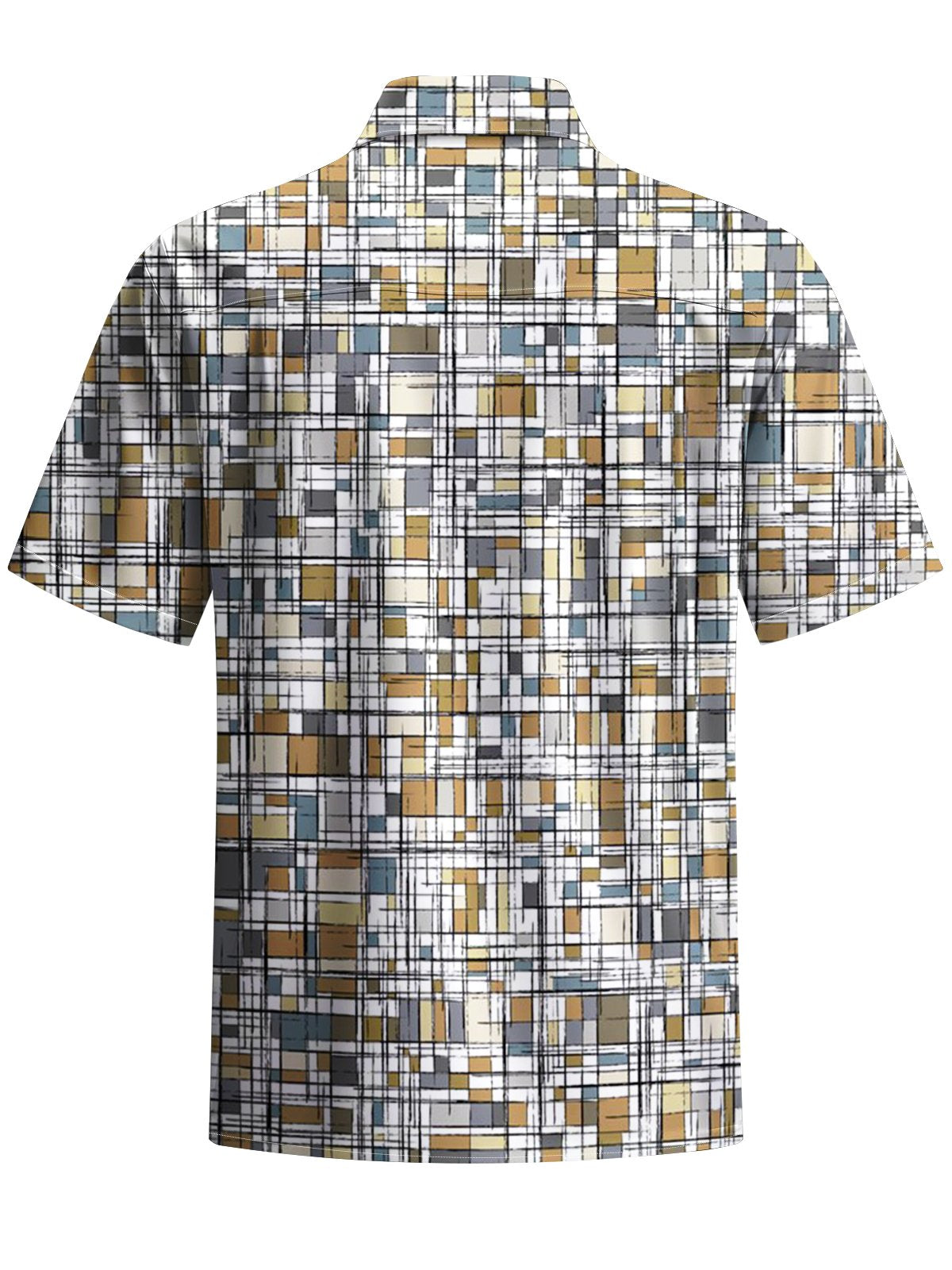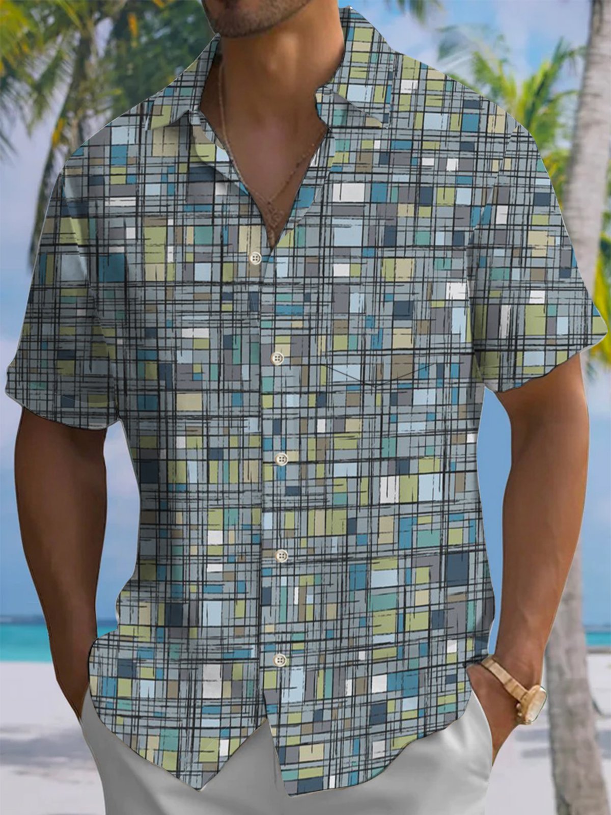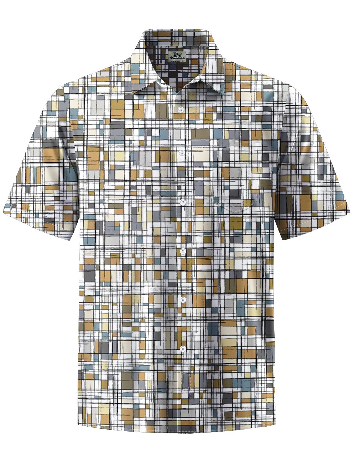 Alohadaddy® Casual Plaid Print Art Elastic Pocket Button Men's Short Sleeve Shirt Big & Tall