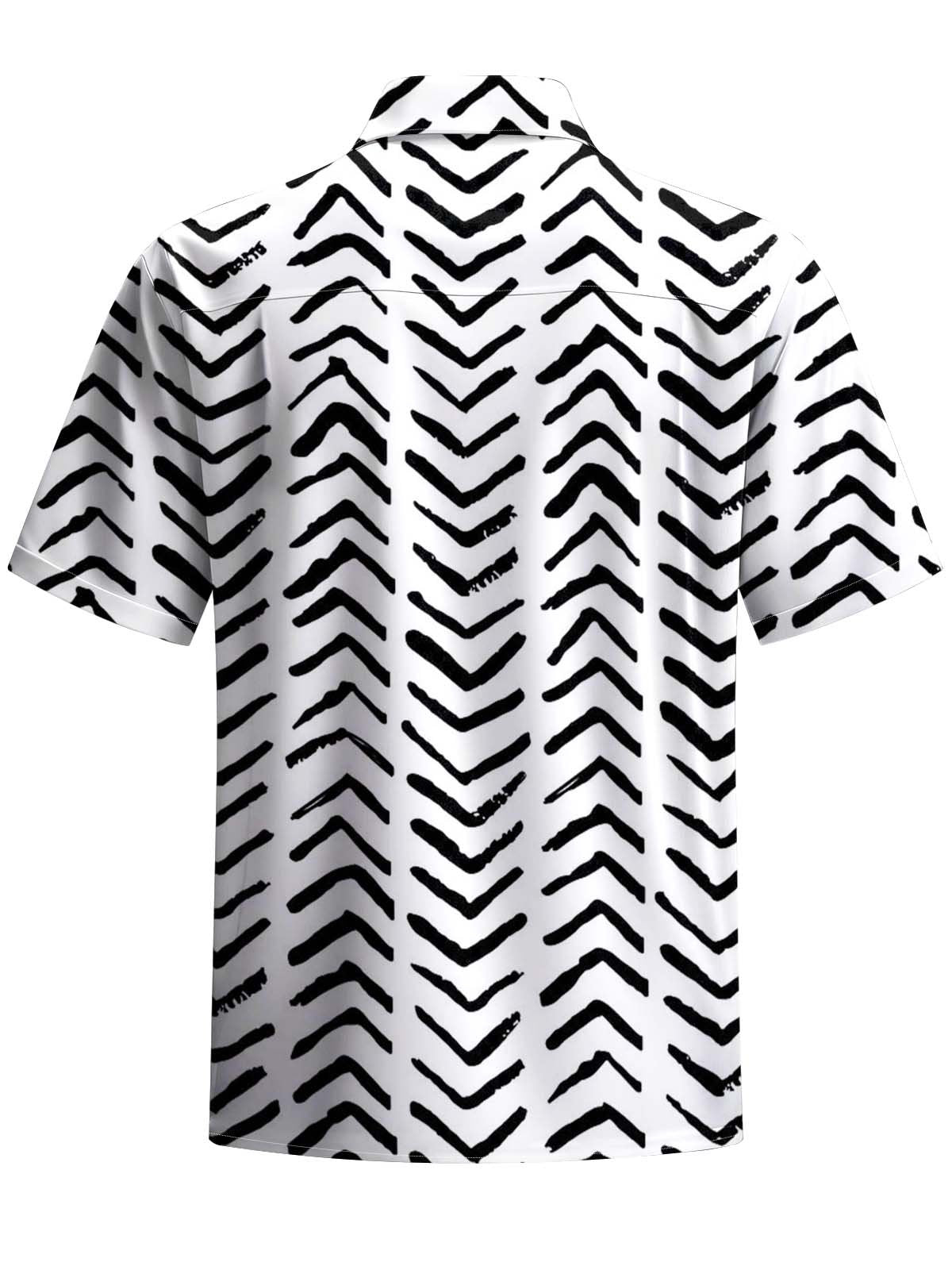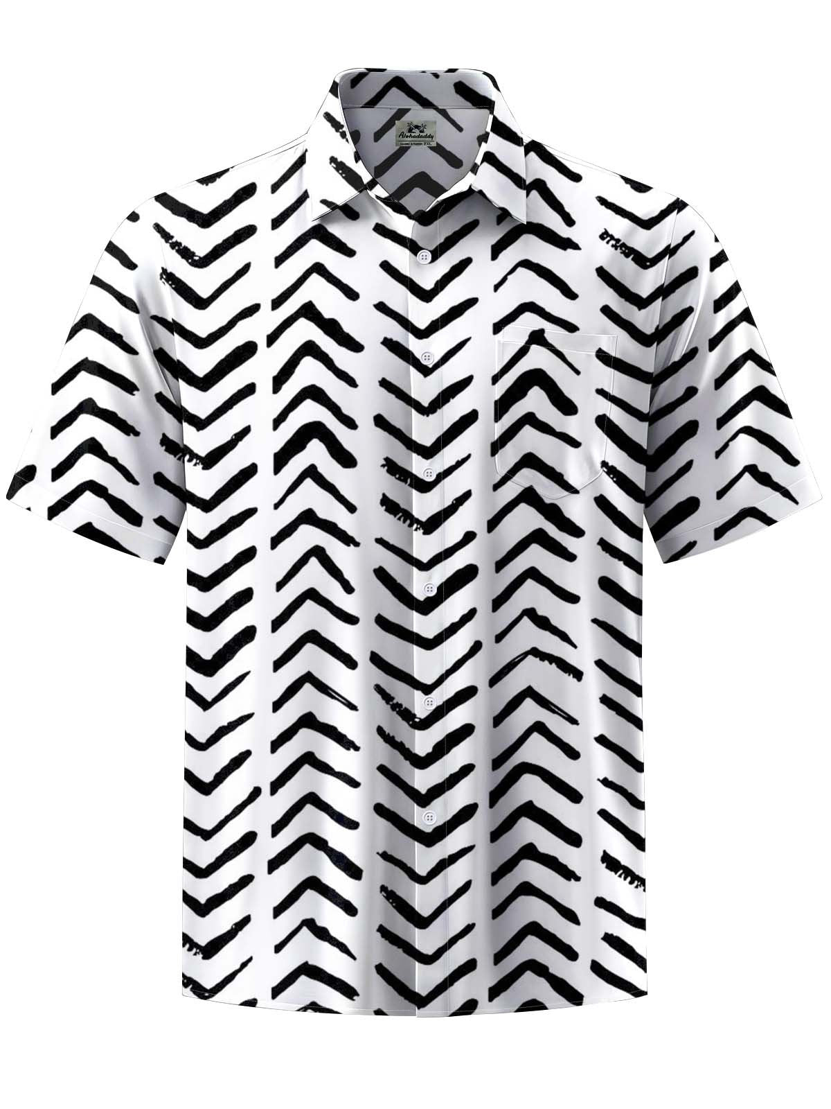 Alohadaddy® Casual Stripe Art Print Chest Pocket Men's Stretch Short Sleeve Shirt Big & Tall