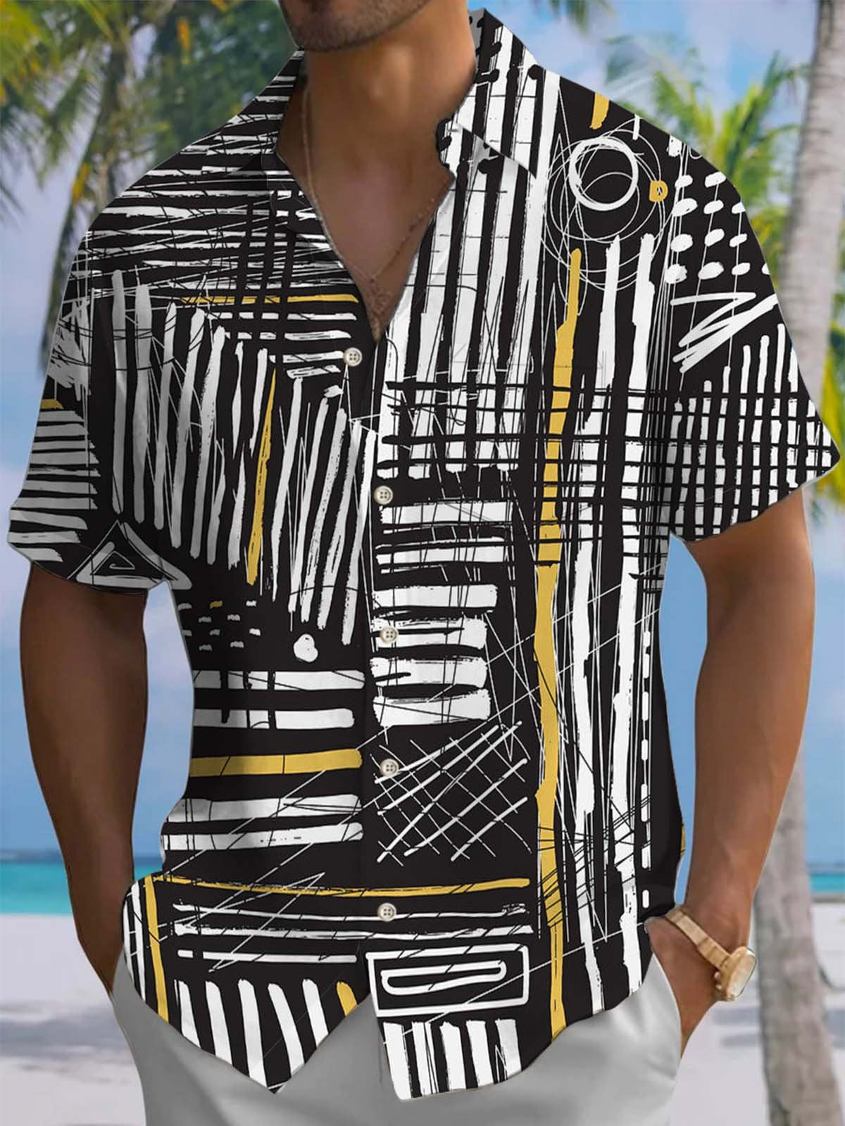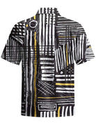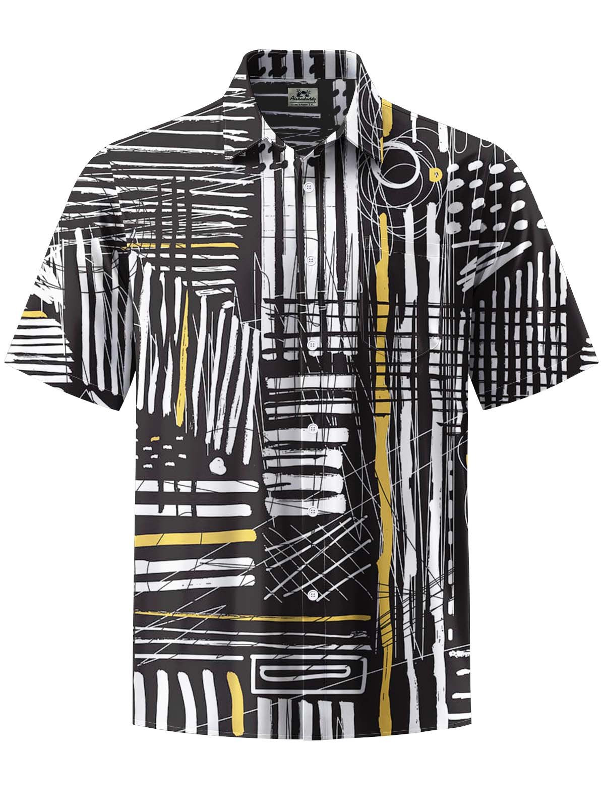 Alohadaddy® Casual Stripe Art Print Chest Pocket Stretch Men's Short Sleeve Shirt Big & Tall