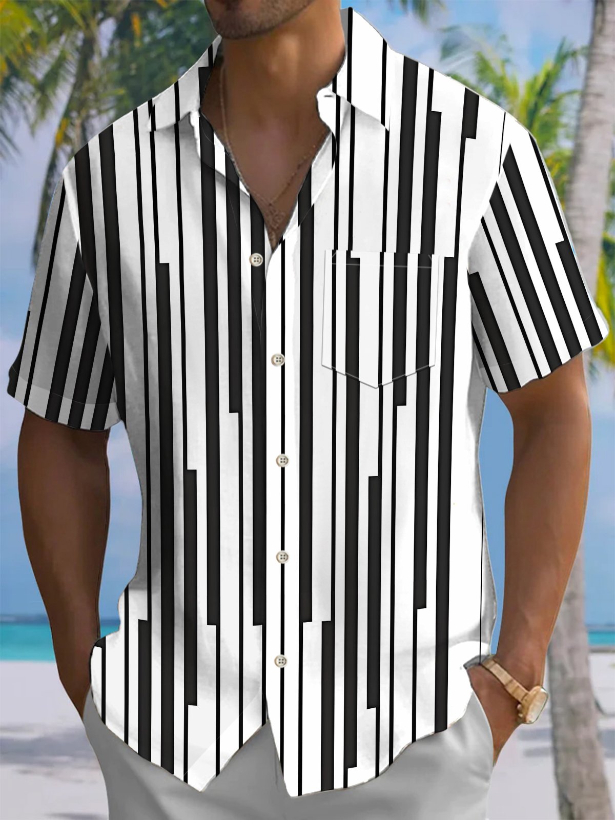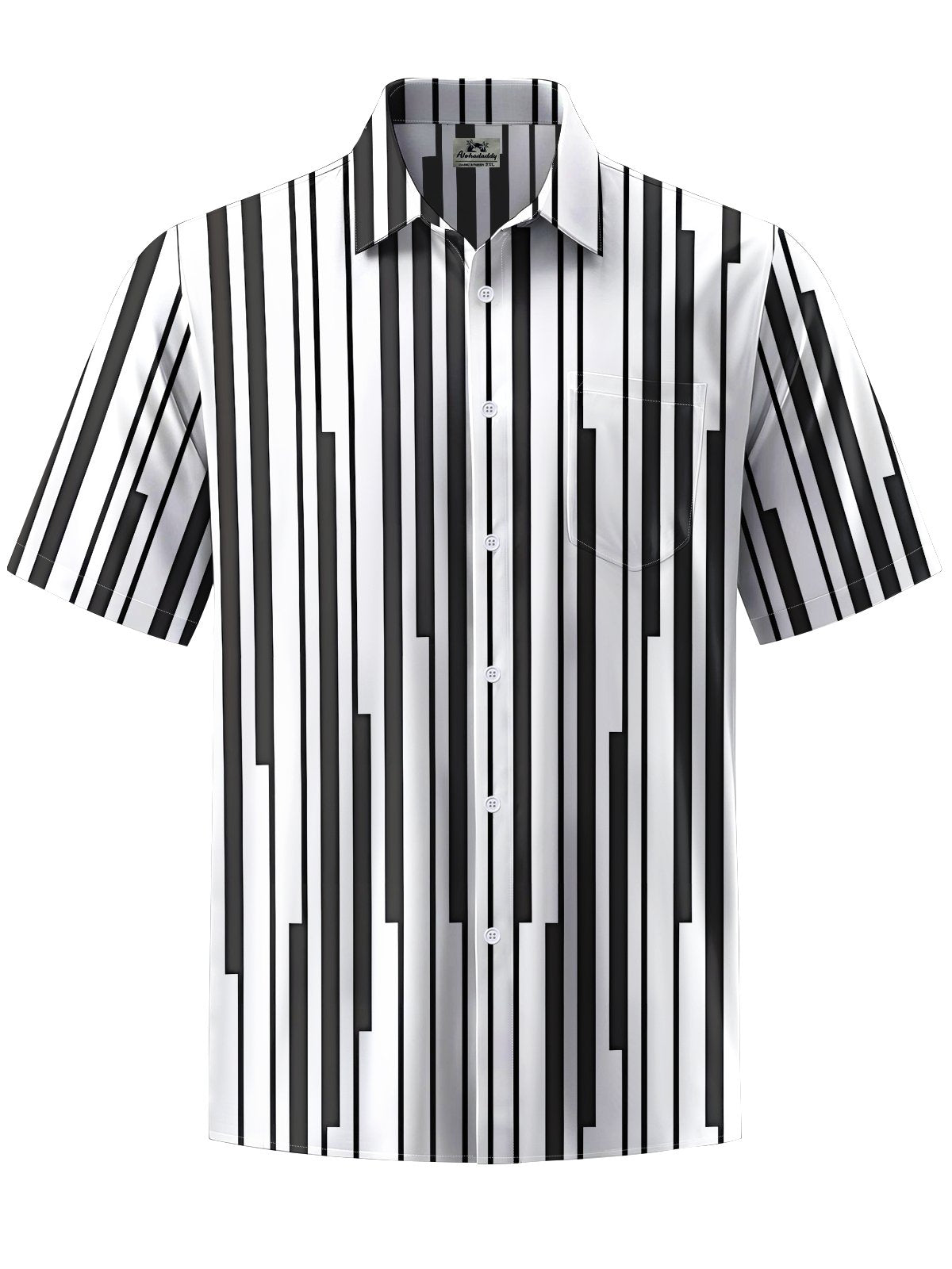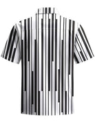 Alohadaddy® Casual Stripe Geometric Art Print Chest Pocket Men's Short Sleeve Shirt Big & Tall