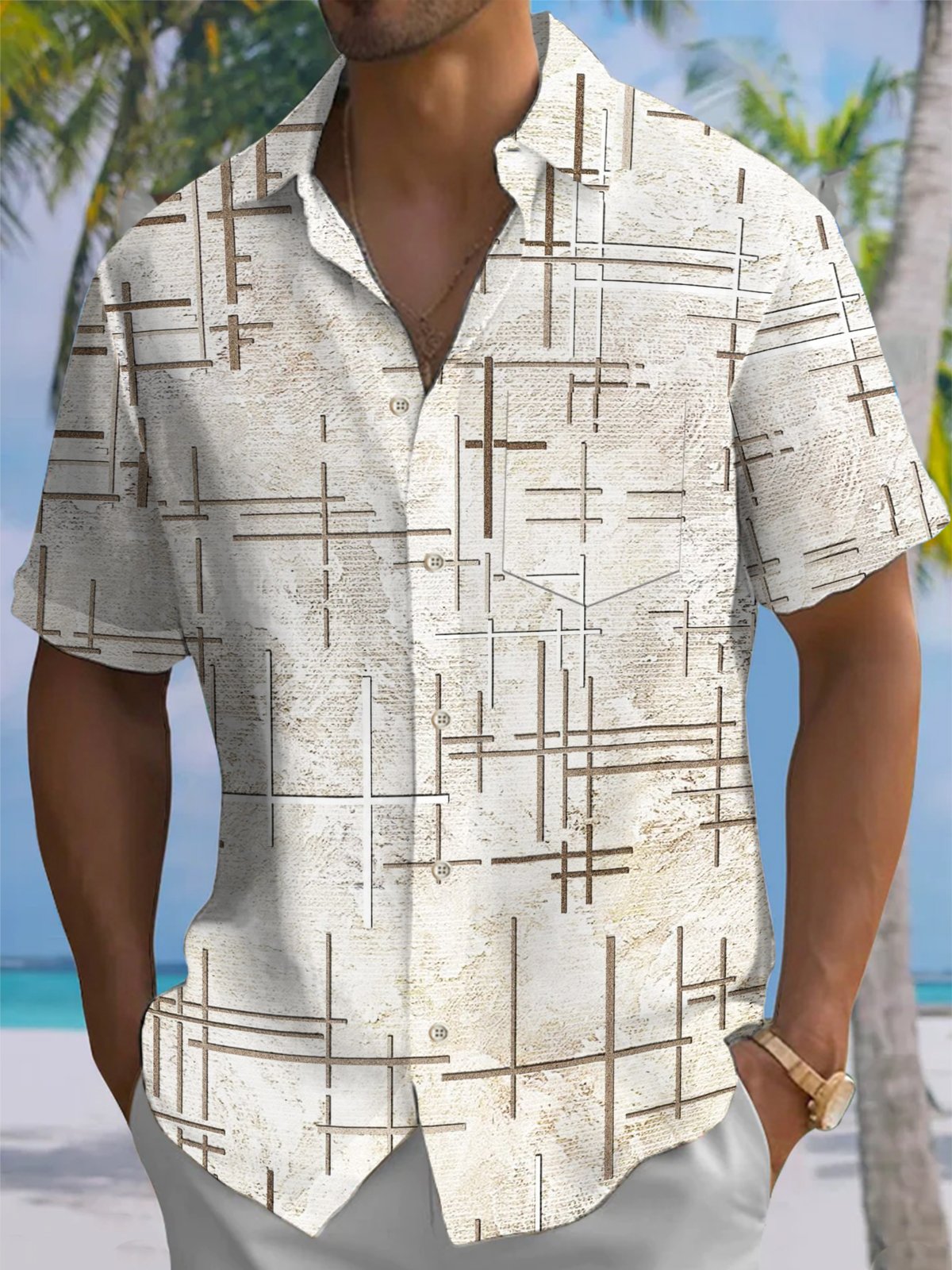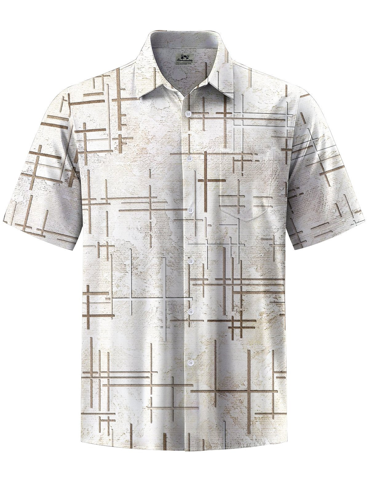 Alohadaddy® Casual Stripe Print Button Pocket Stretch Men's Short Sleeve Shirt Big & Tall
