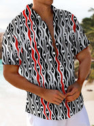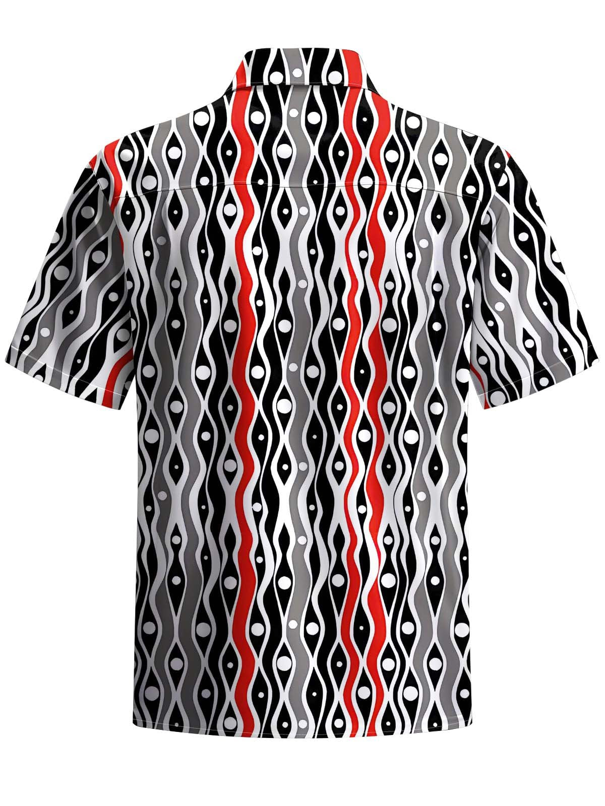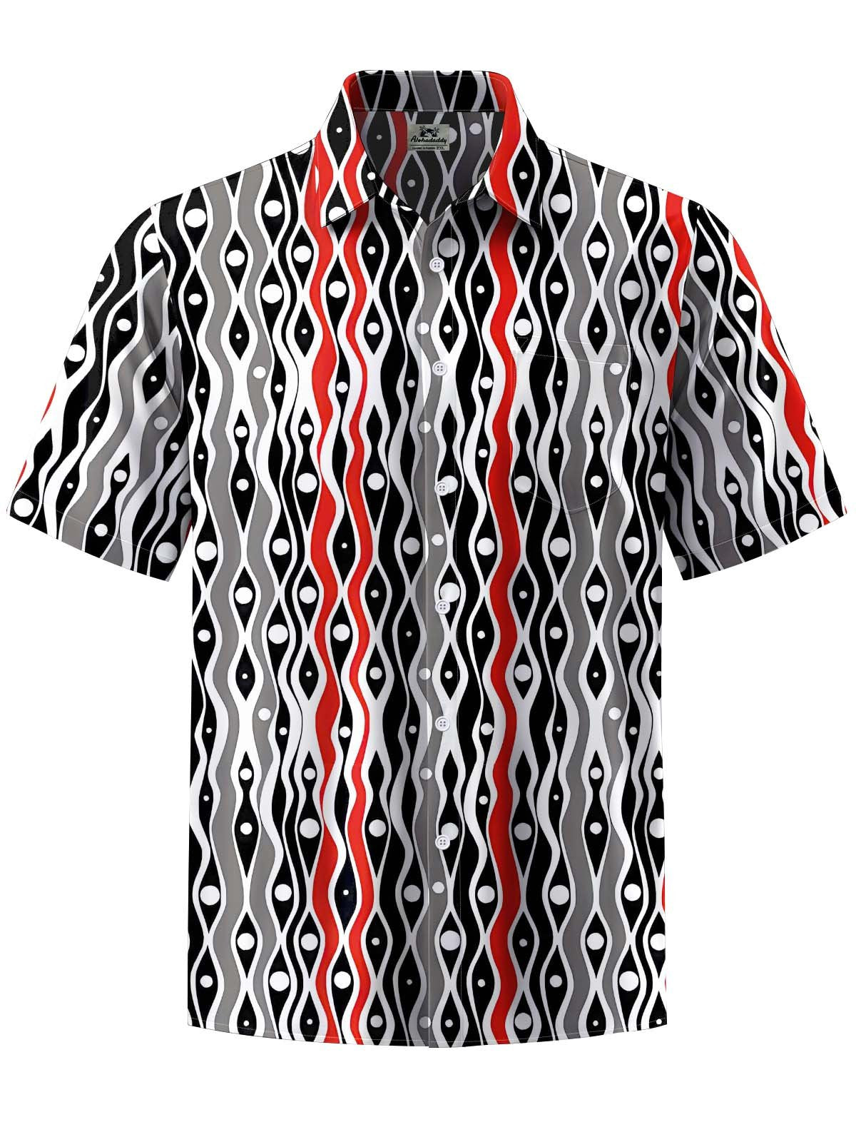 Alohadaddy® Casual Striped Geometric Art Print Chest Pocket Stretch Men's Short Sleeve Shirt Big & Tall
