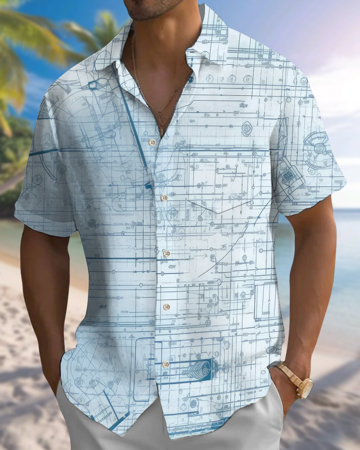 Alohadaddy® Casual Striped Line Printed Pocket Elastic Button Men's Long Sleeve Shirt Big & Tall
