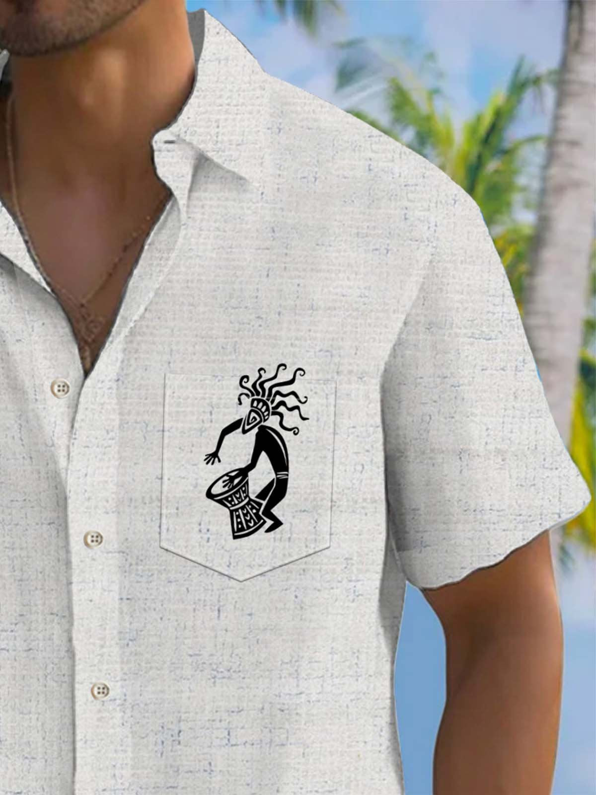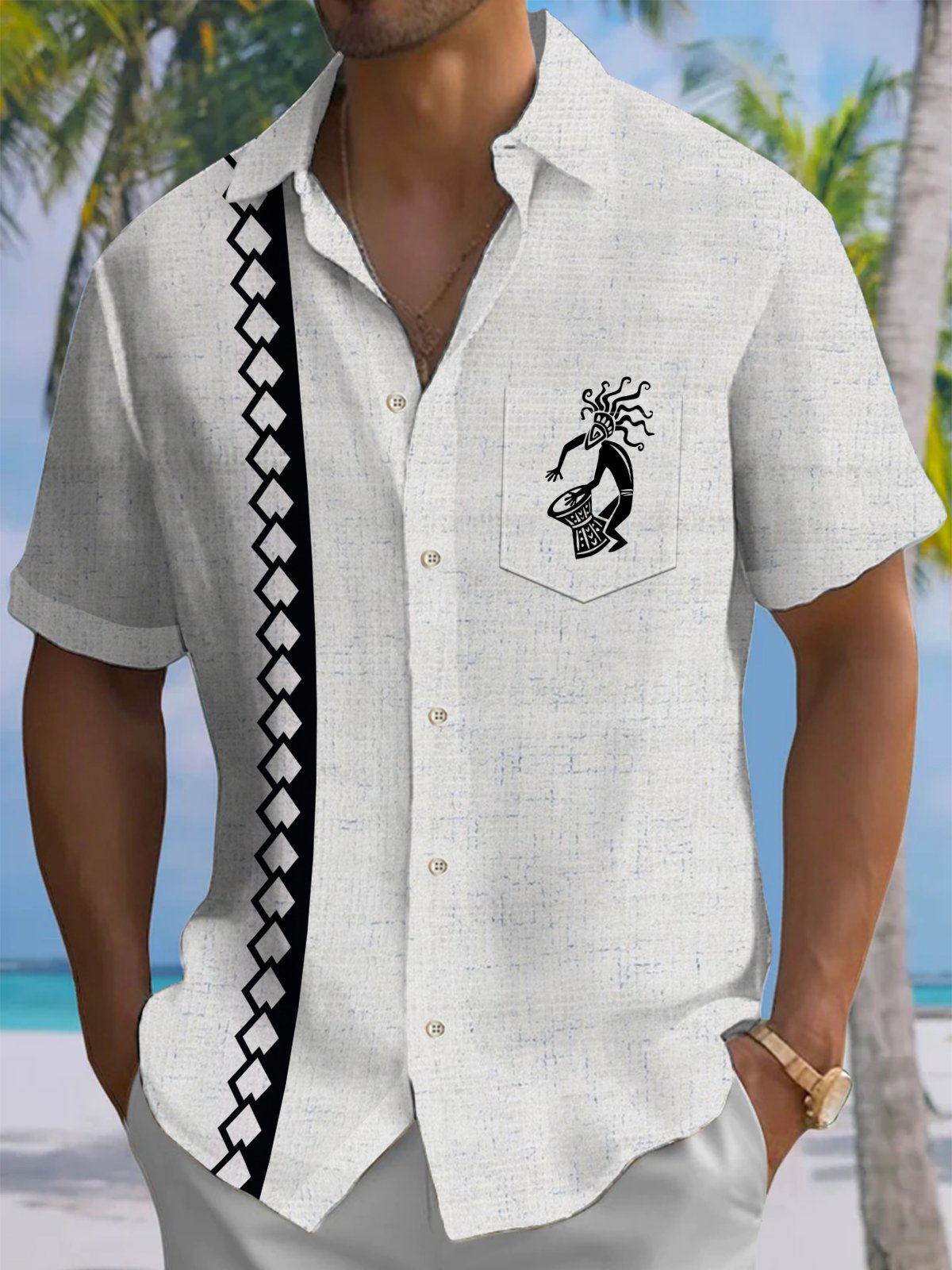 Alohadaddy® Casual Striped Tiki Print Chest Pocket Stretch Men's Short Sleeve Shirt Big & Tall