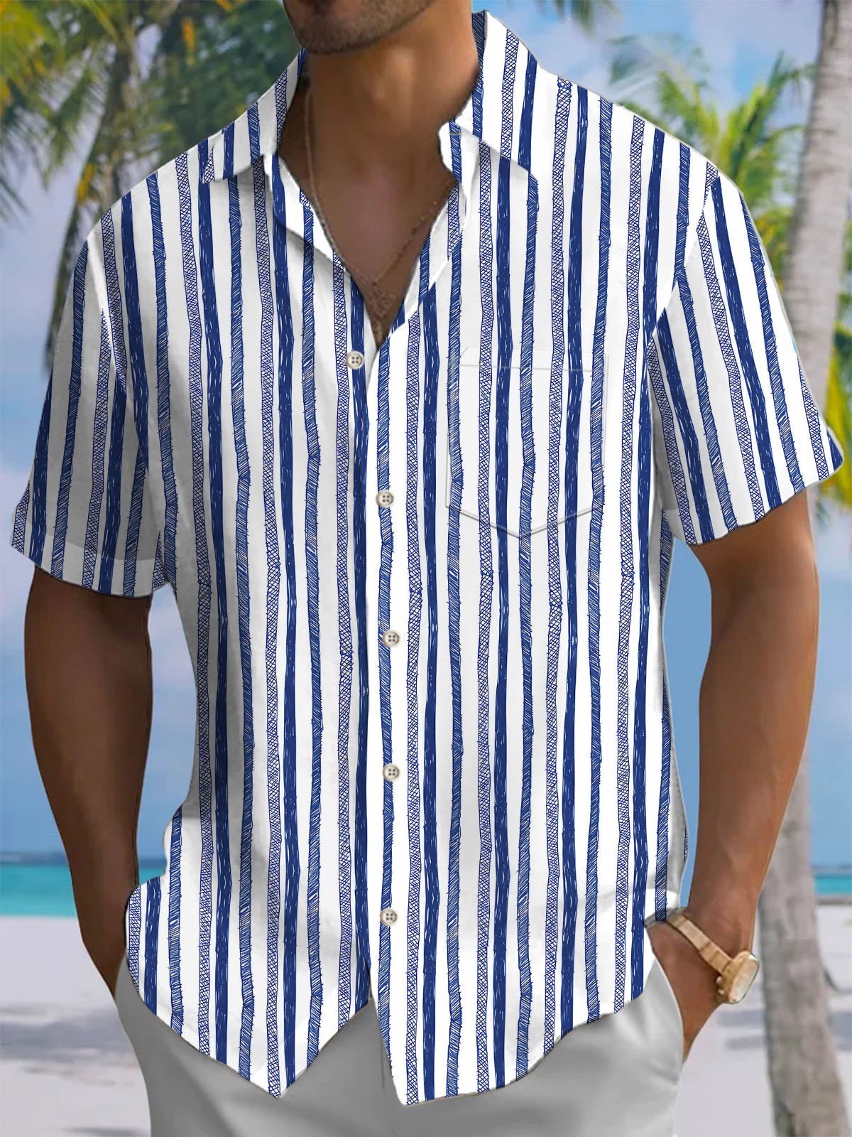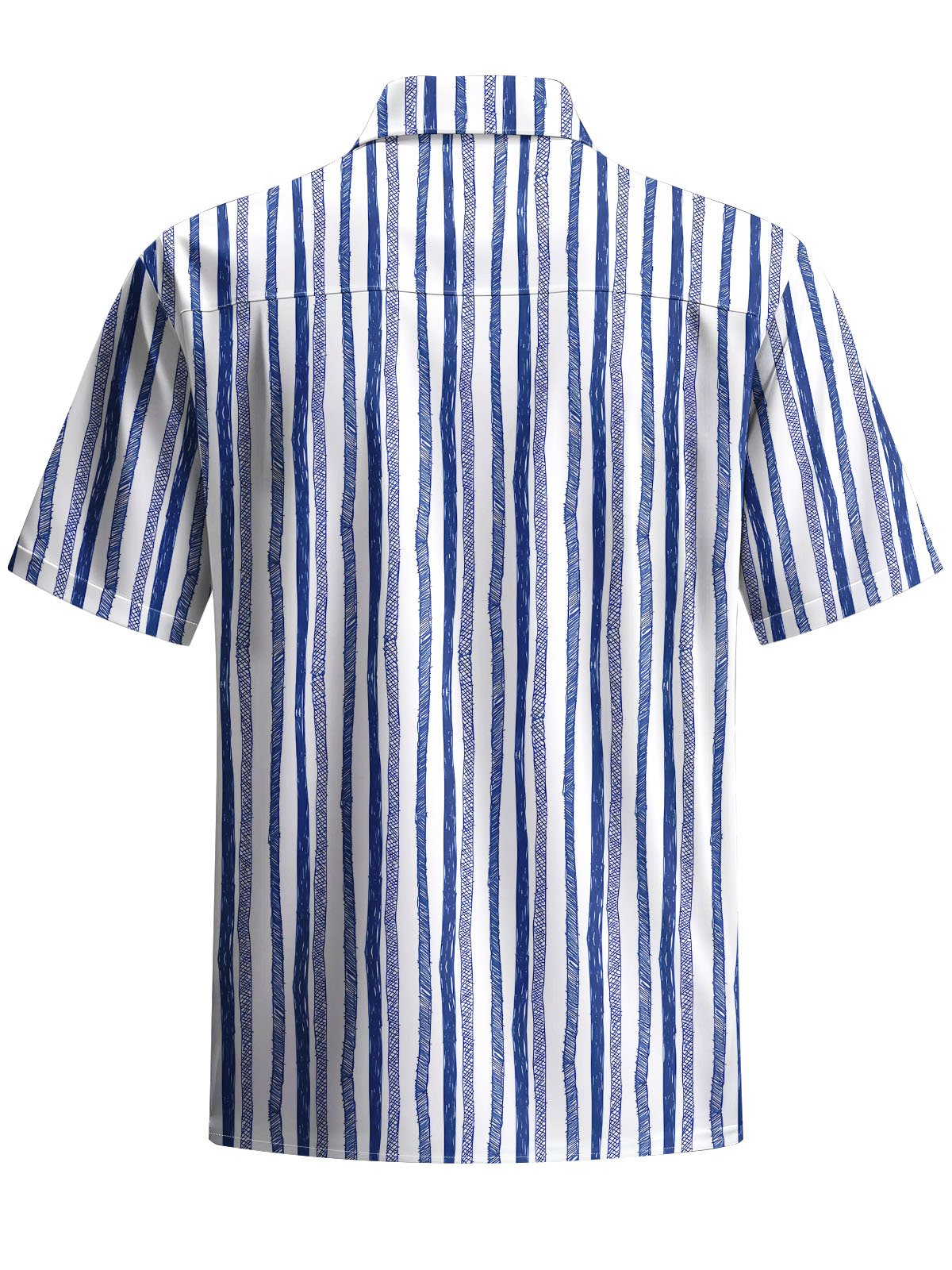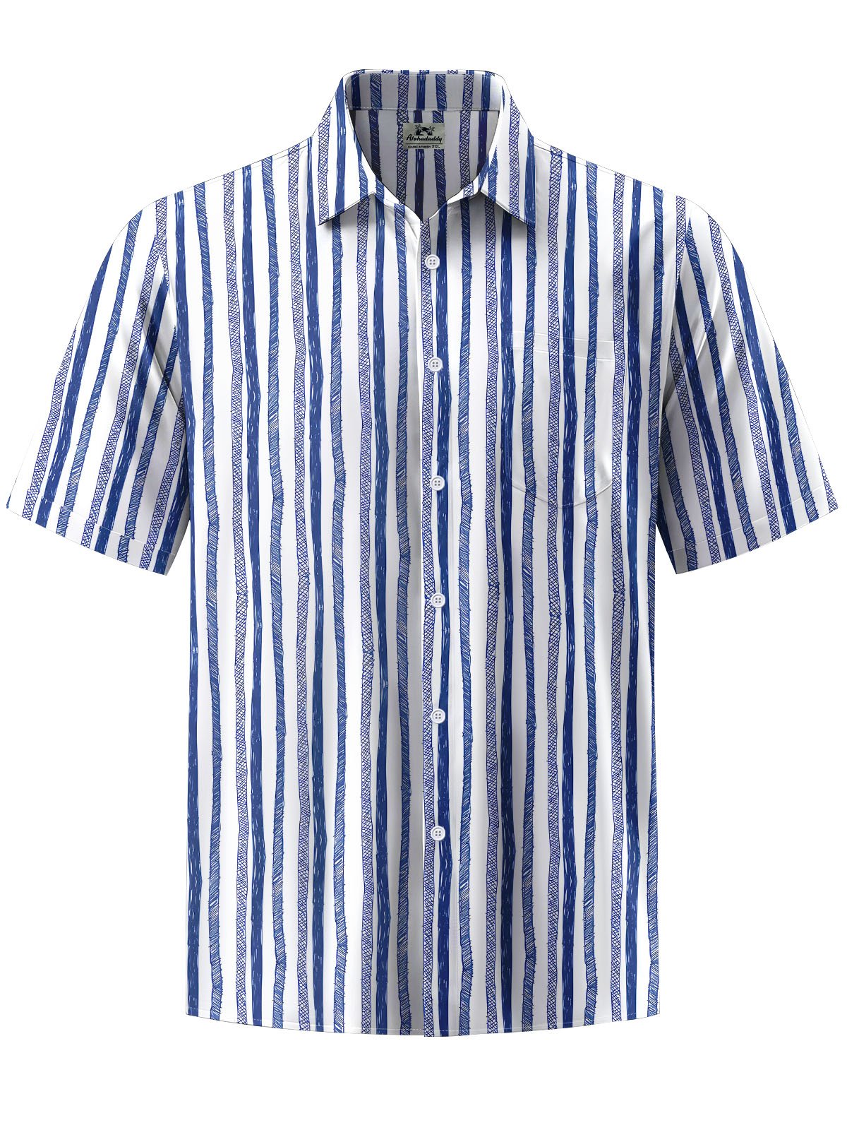 Alohadaddy® Casual Stripes Art Print Chest Pocket Mens Wicking Short Sleeve Shirt Big & Tall