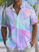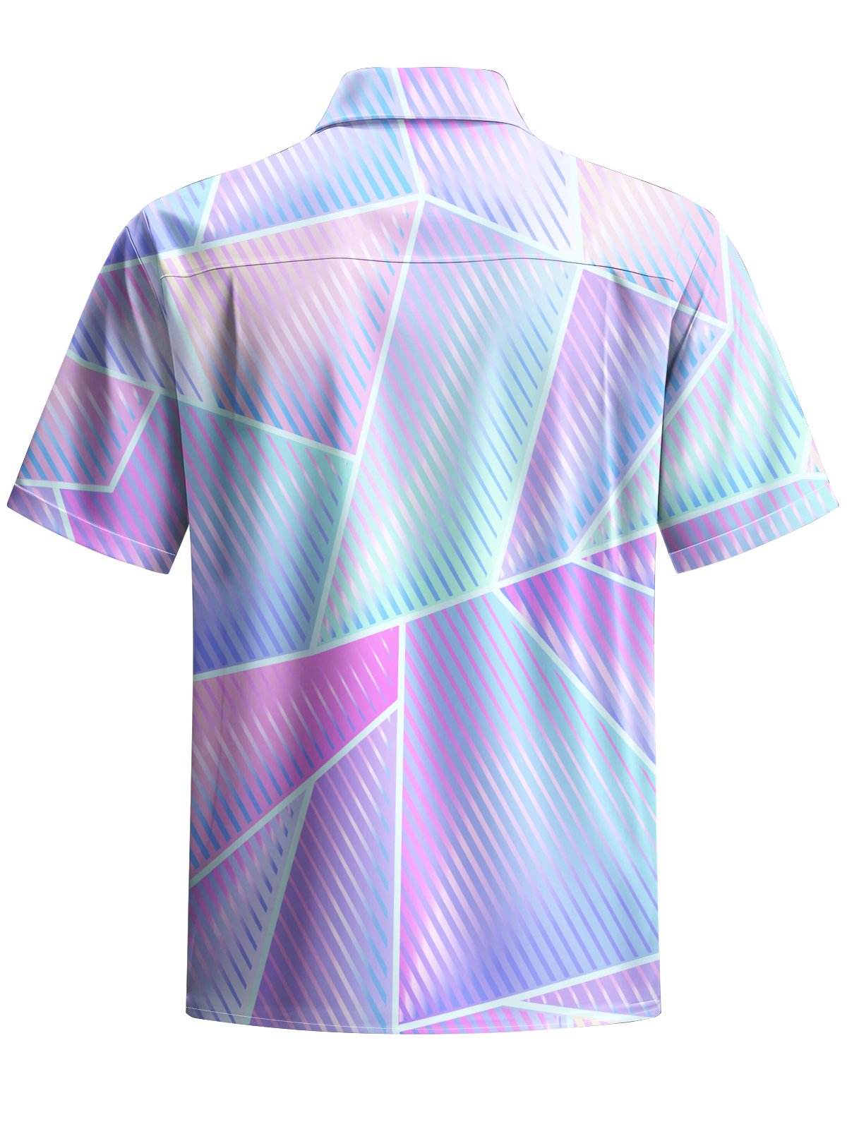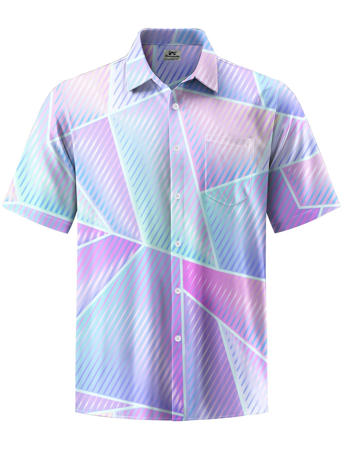 Alohadaddy® Hawaiian Geometric Stripe Art Print with Chest Pocket for Men's Stretch Short Sleeve Shirt Big & Tall