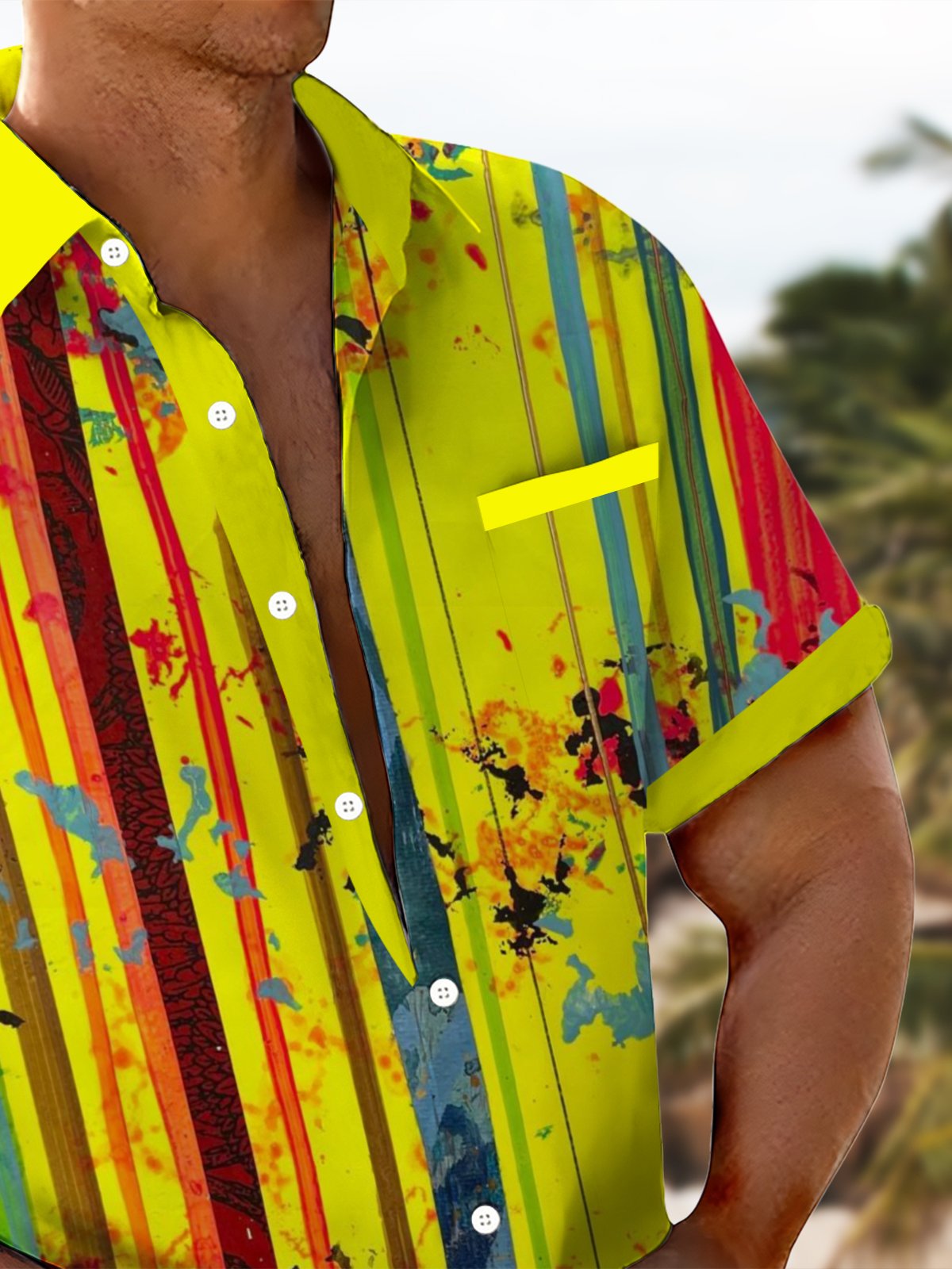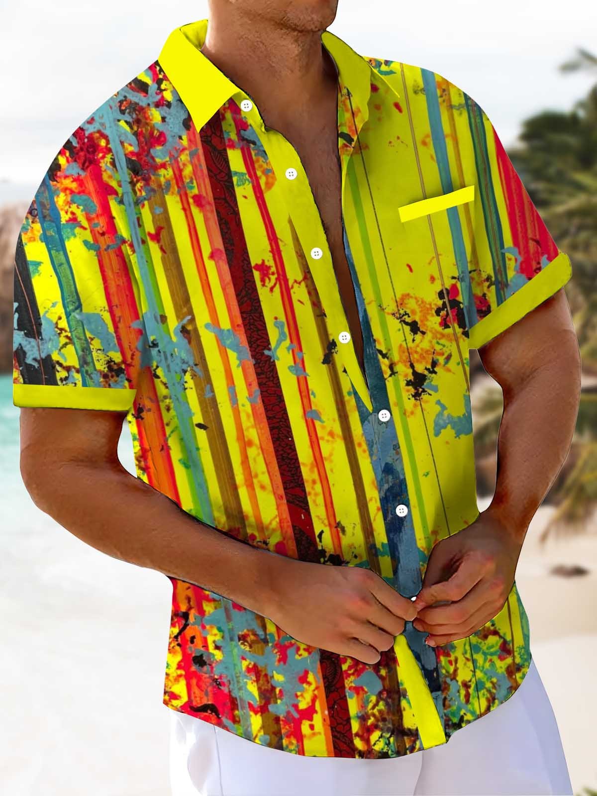Alohadaddy® Hawaiian Stripe Abstract Art Print Chest Pocket Men's Short Sleeve Shirt Big & Tall