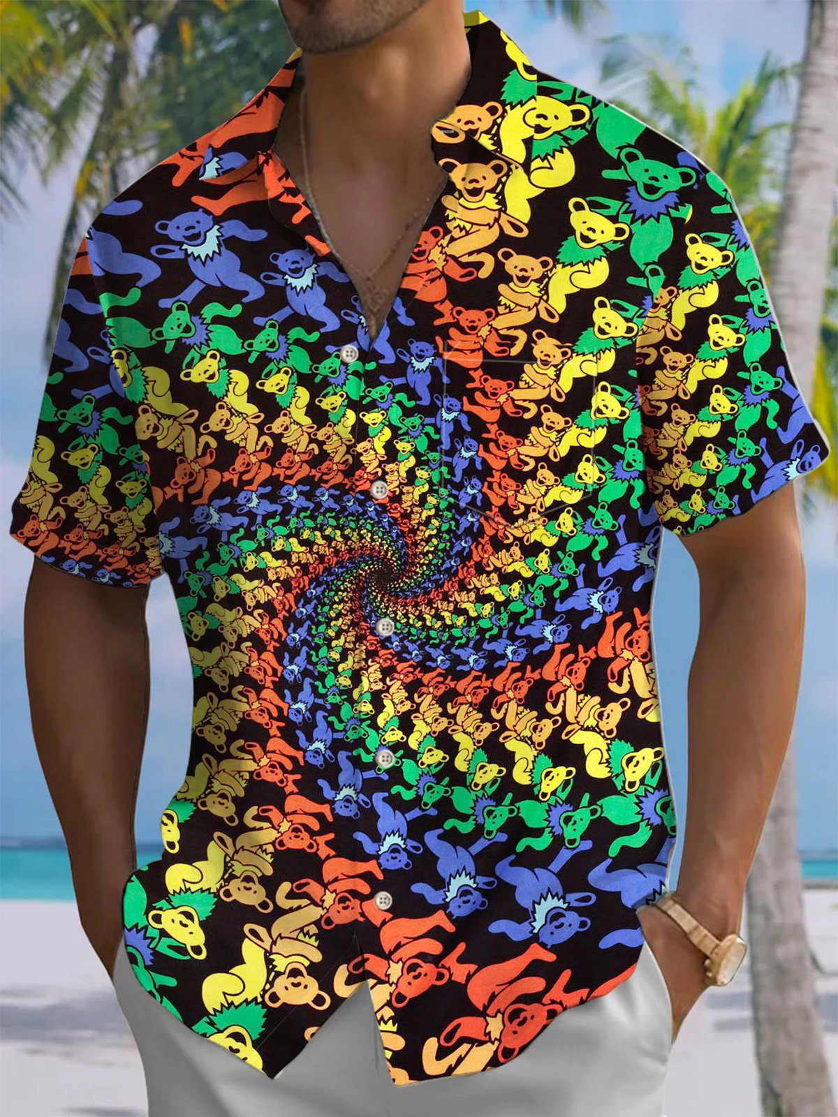 Alohadaddy® Men's Casual Bear Gradient Art Print Chest Pocket Short Sleeve Shirt Big & Tall