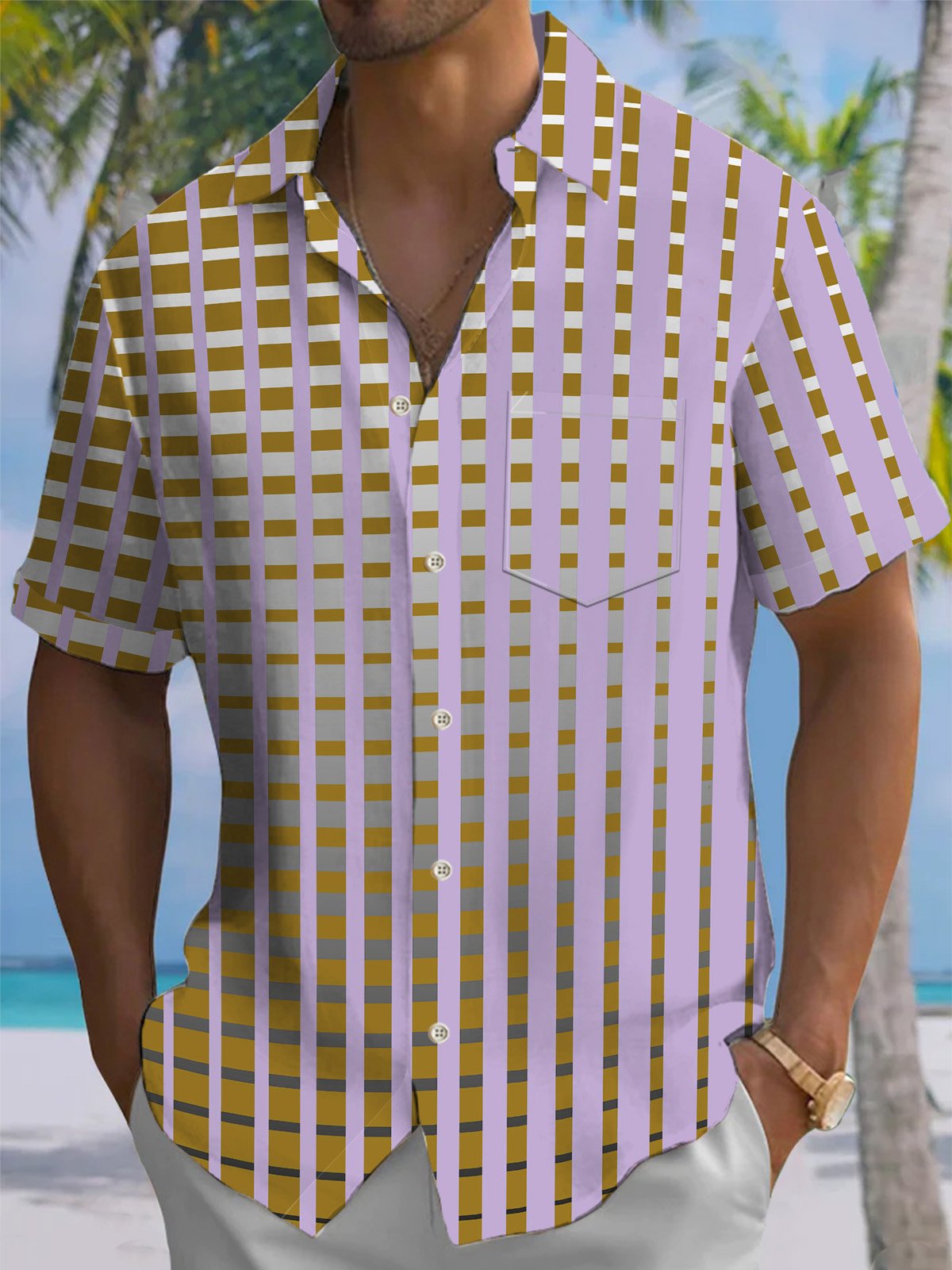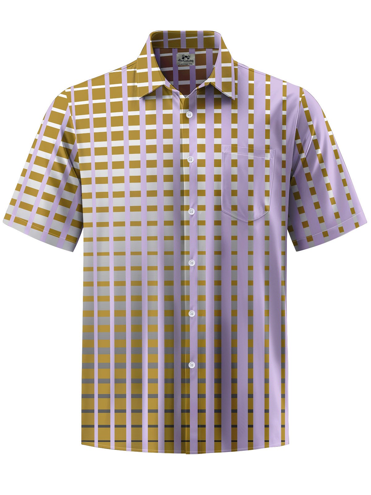 Alohadaddy® Men's Casual Check Art Print Chest Pocket Stretch Short Sleeve Shirt Big & Tall