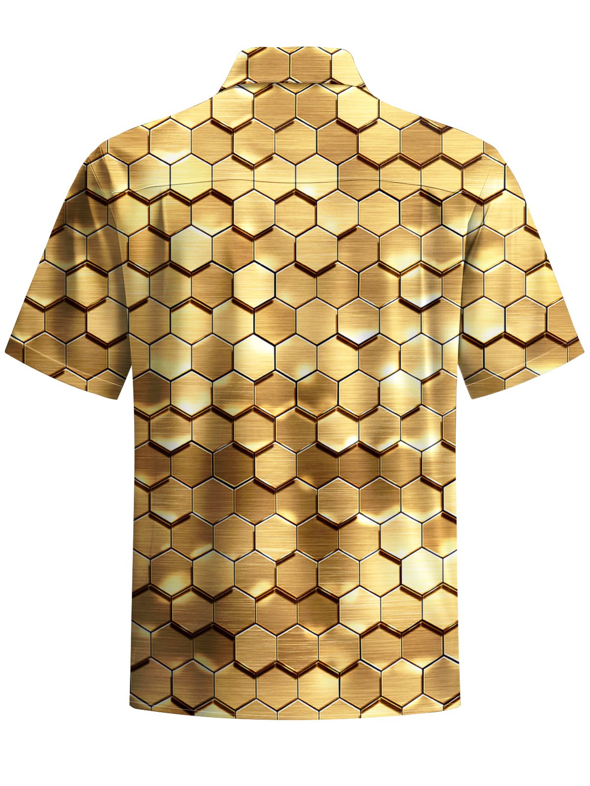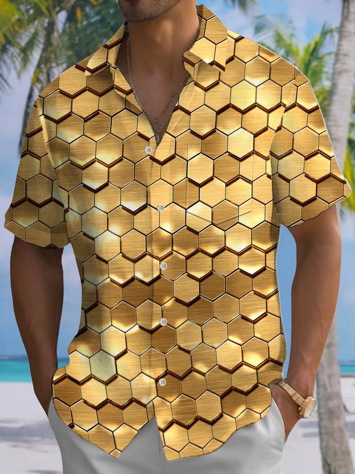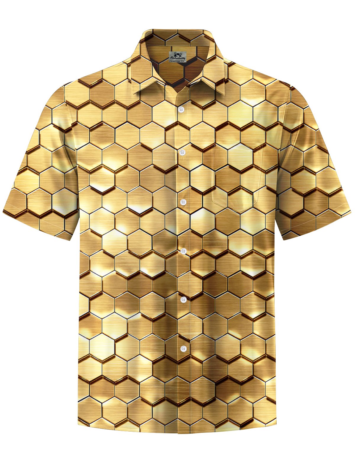 Alohadaddy® Men's Casual Metal Honeycomb Art Print Chest Pocket Stretch Short Sleeve Shirt Big & Tall