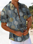 Alohadaddy® Retro Geometric Art Print Chest Pocket Stretch Men's Short Sleeve Shirt Big & Tall